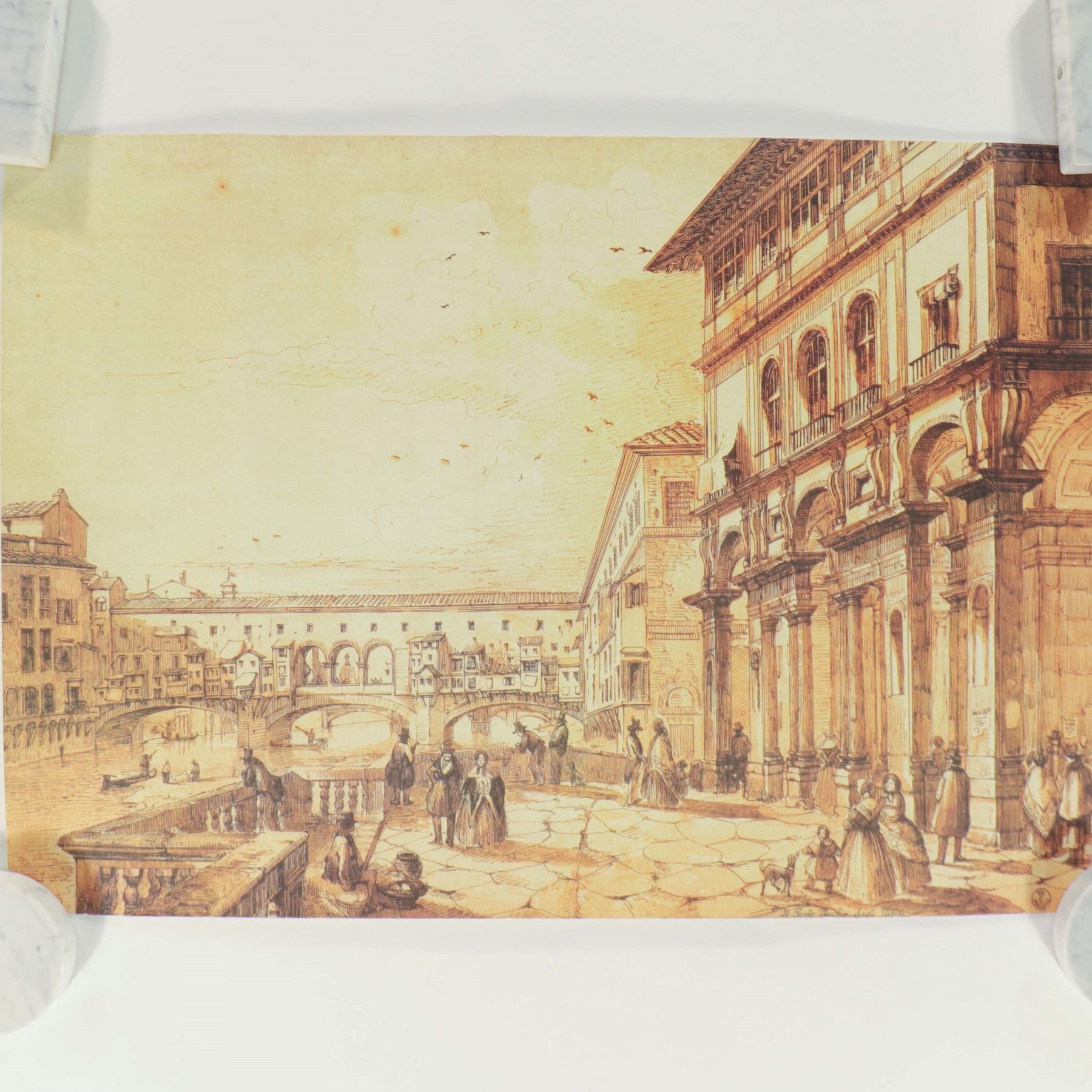 Primary work: Alex Colville, Hound in Field, colour offset reproduction after the 1958 painting; sheet 60 × 48 cm; image 51 × 38 cm. Plus two additional decorative prints (one classical Italian city view; one hummingbird print). Profile: Colville (1920–2013) is a leading figure in Canadian realism; while this is a reproduction, it references a major icon of post‑war Canadian art.