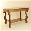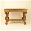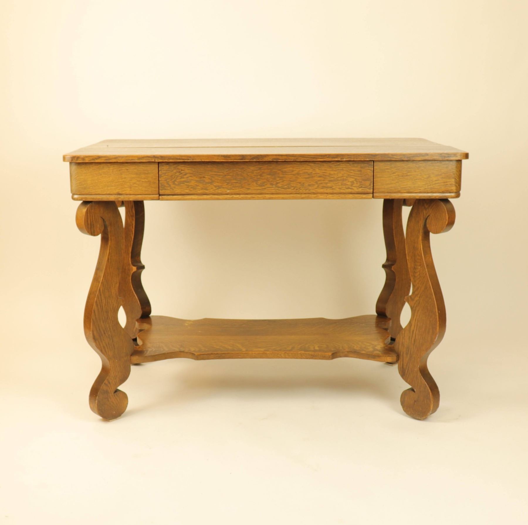 made of quarter sawn oak with a drawer. Please be advised there is a crack in the table top from split wood as it is made of real wood.