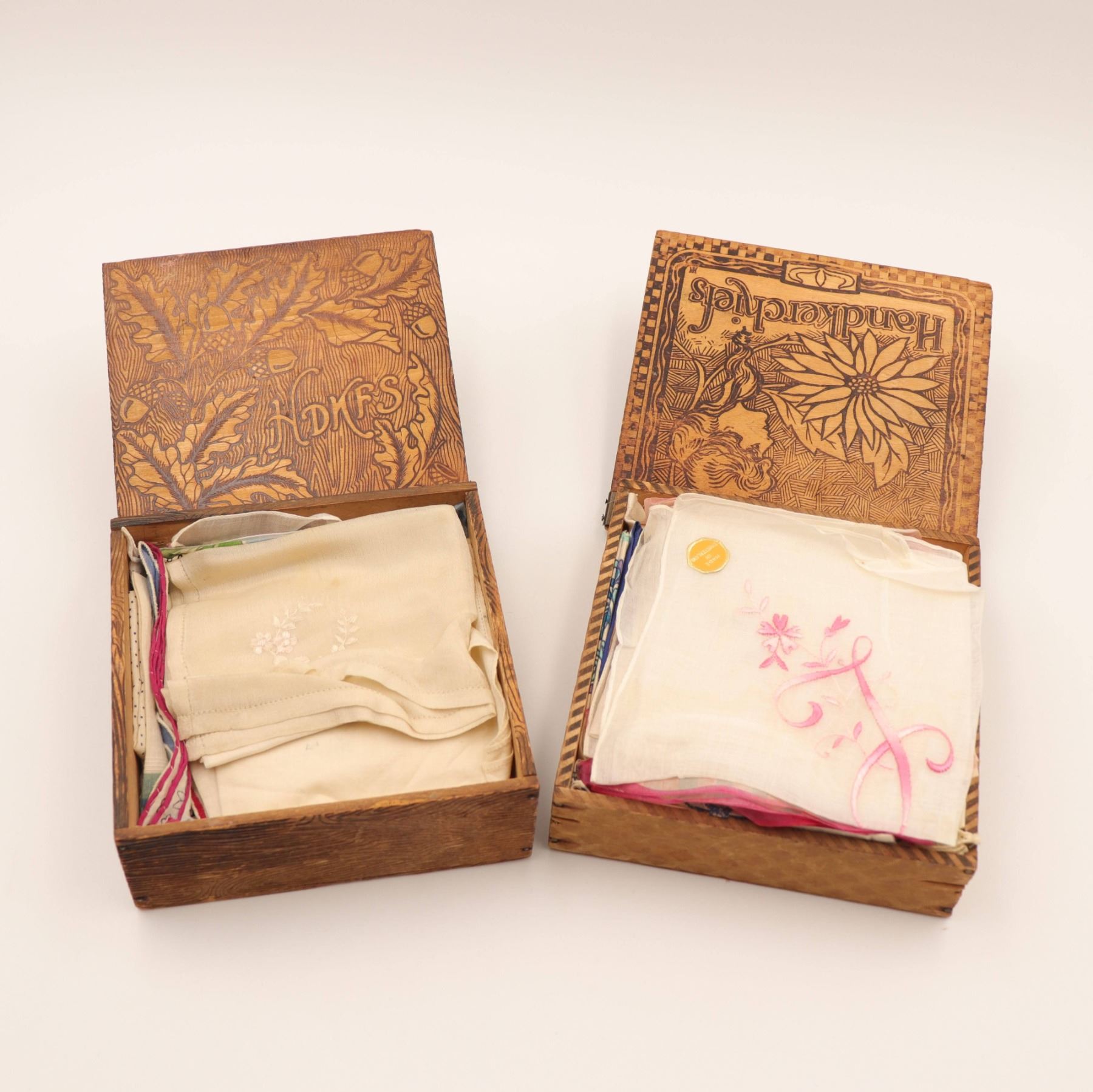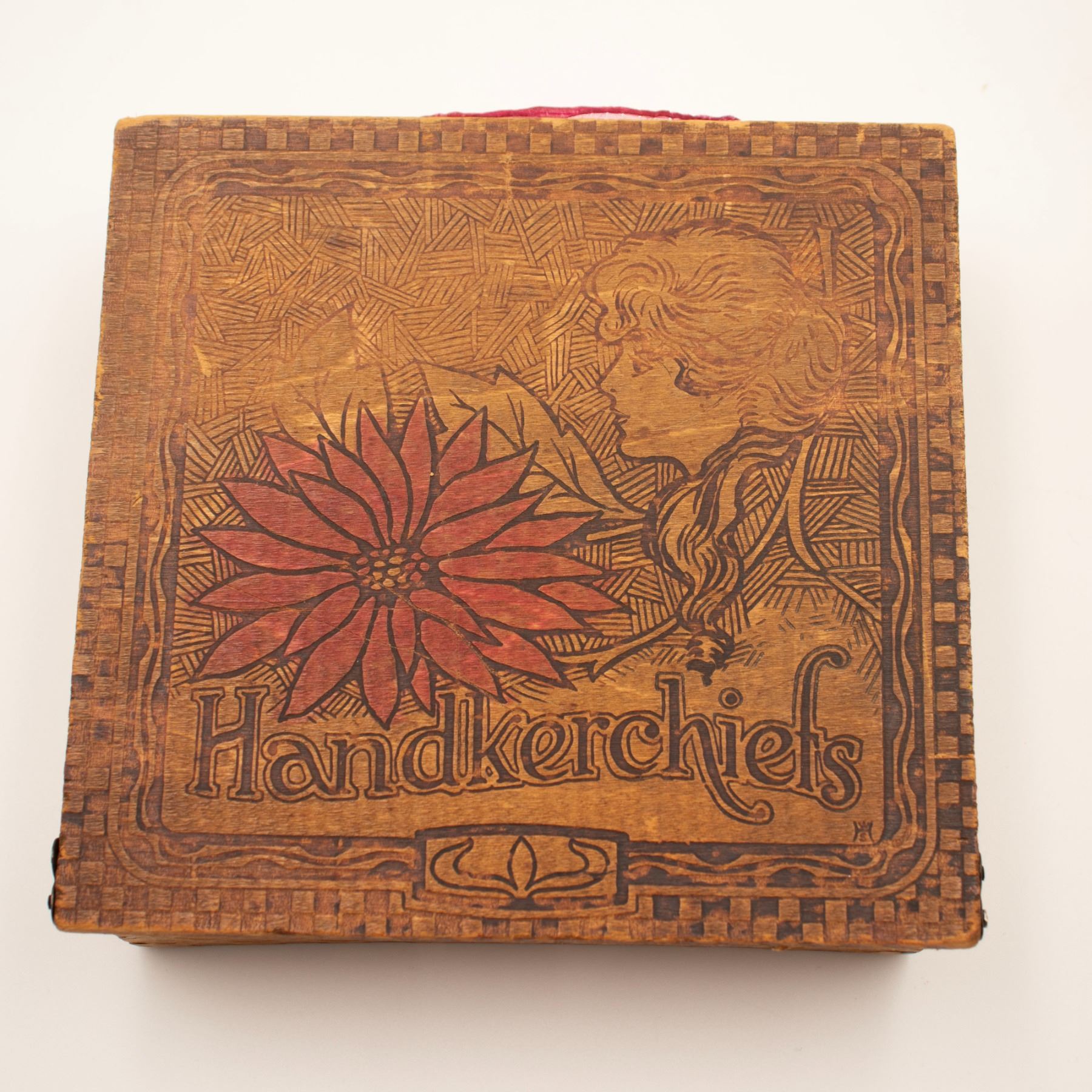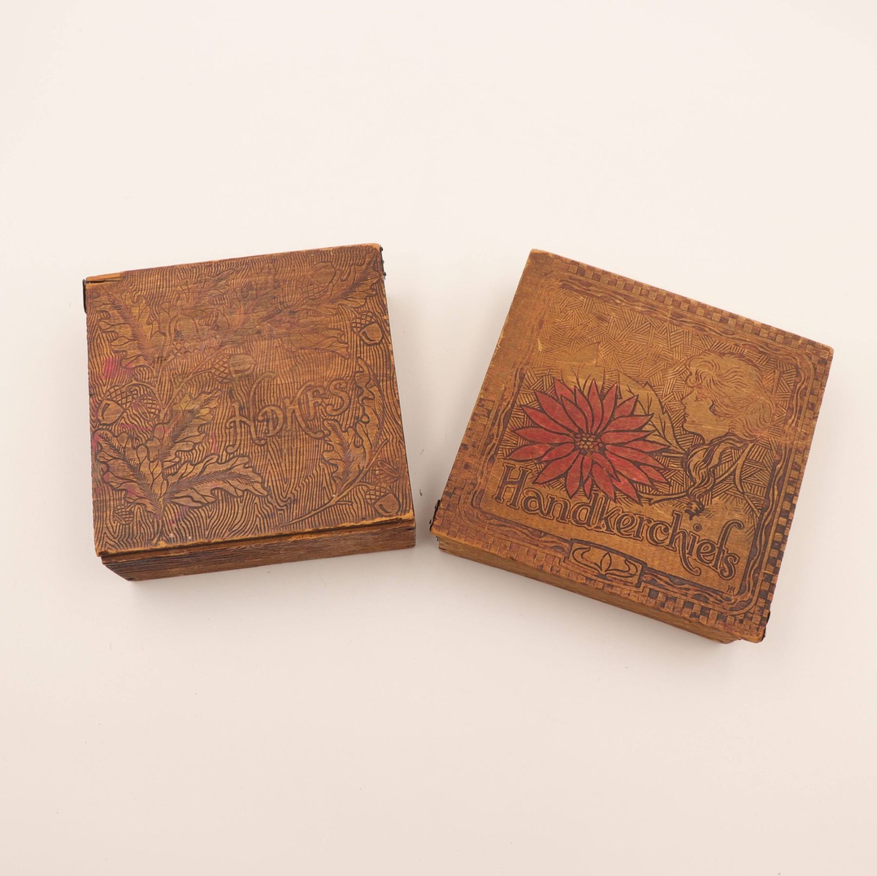 Antique Wooden Handkerchief Boxes - Pyrography Burned