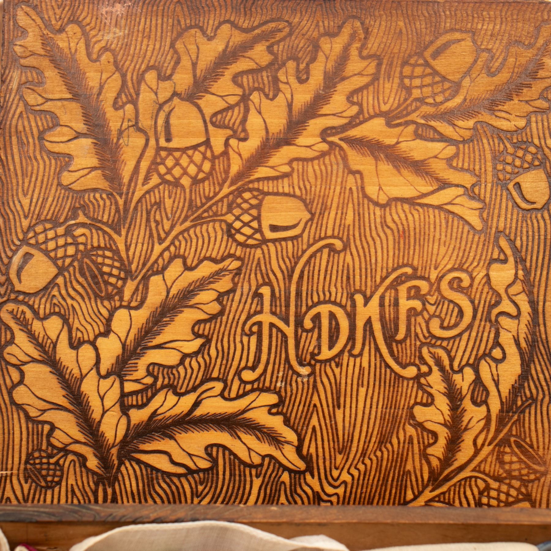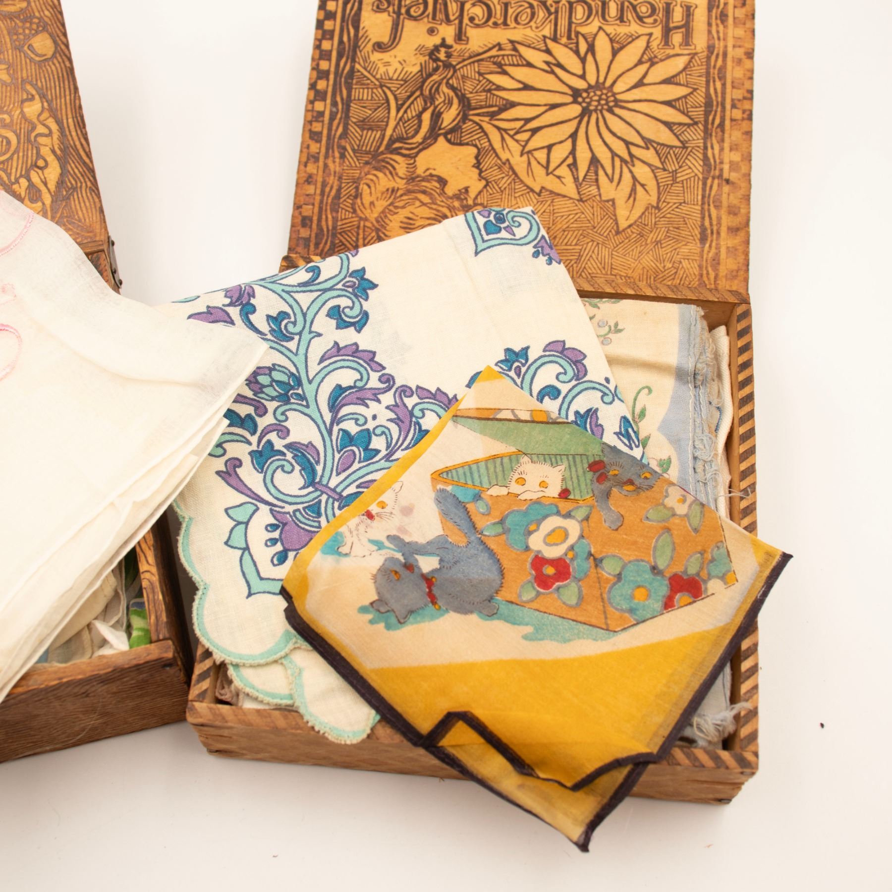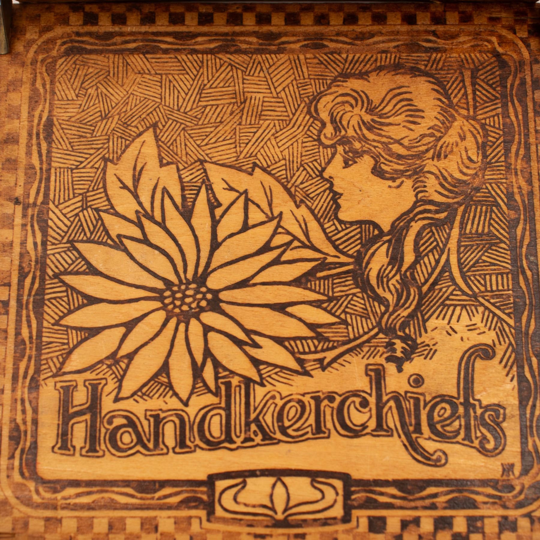Antique Wooden Handkerchief Boxes - Pyrography Burned