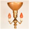 Art Deco Brass Torchère Floor Lamp with Flame Shades, Circa 1930