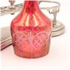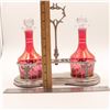 Art Nouveau cranberry glass double cruet set with silverplate stand