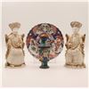 2 sculptures of emperor and empress, imapi plate and cloisonne vase