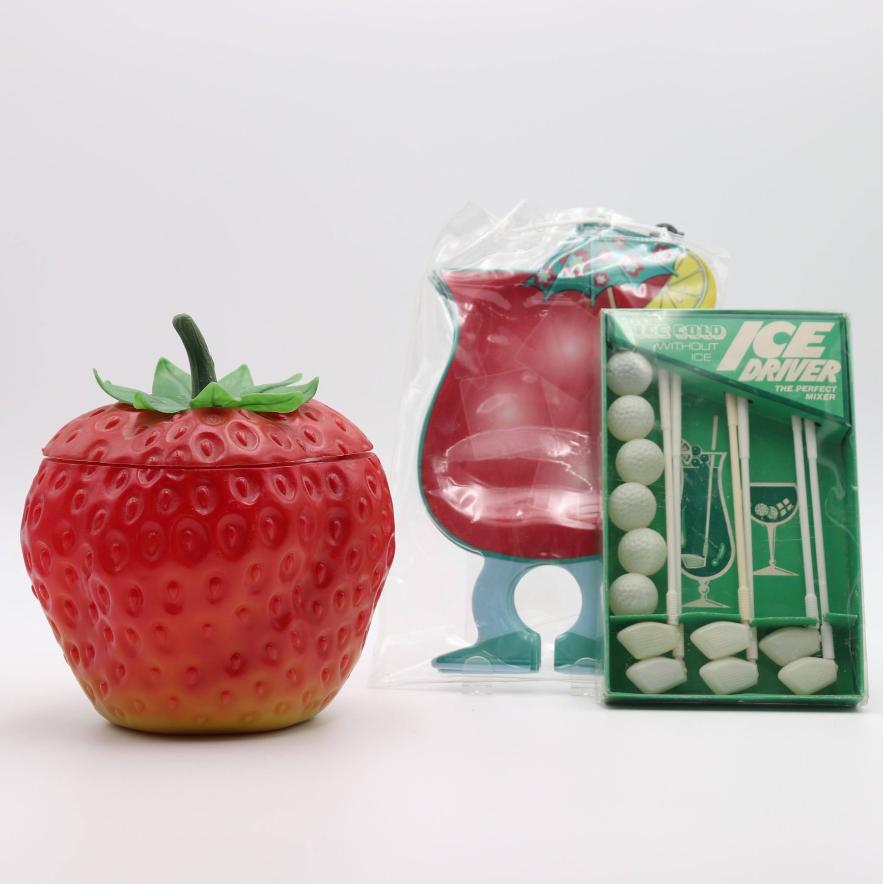 strawberry Ice bucket, cocktail décor, party plates, retro drink mixers