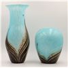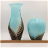 These two vases are from the HQT Glass Company, known for its handcrafted art glass, often showcasing intricate designs and bold colours like blue and brown. HQT Glass specialized in creating distinctive cased glass pieces, layering different colours to achieve depth and complexity. Their work was popular for its artistic value and craftsmanship. These vases, in particular, feature cased glass construction, where layers of blue and brown glass are fused, highlighting HQT's signature style.