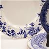 4 dinner plates (good condition), 2 side plates (minor damage to one and crack in another) and a book for flow blue.