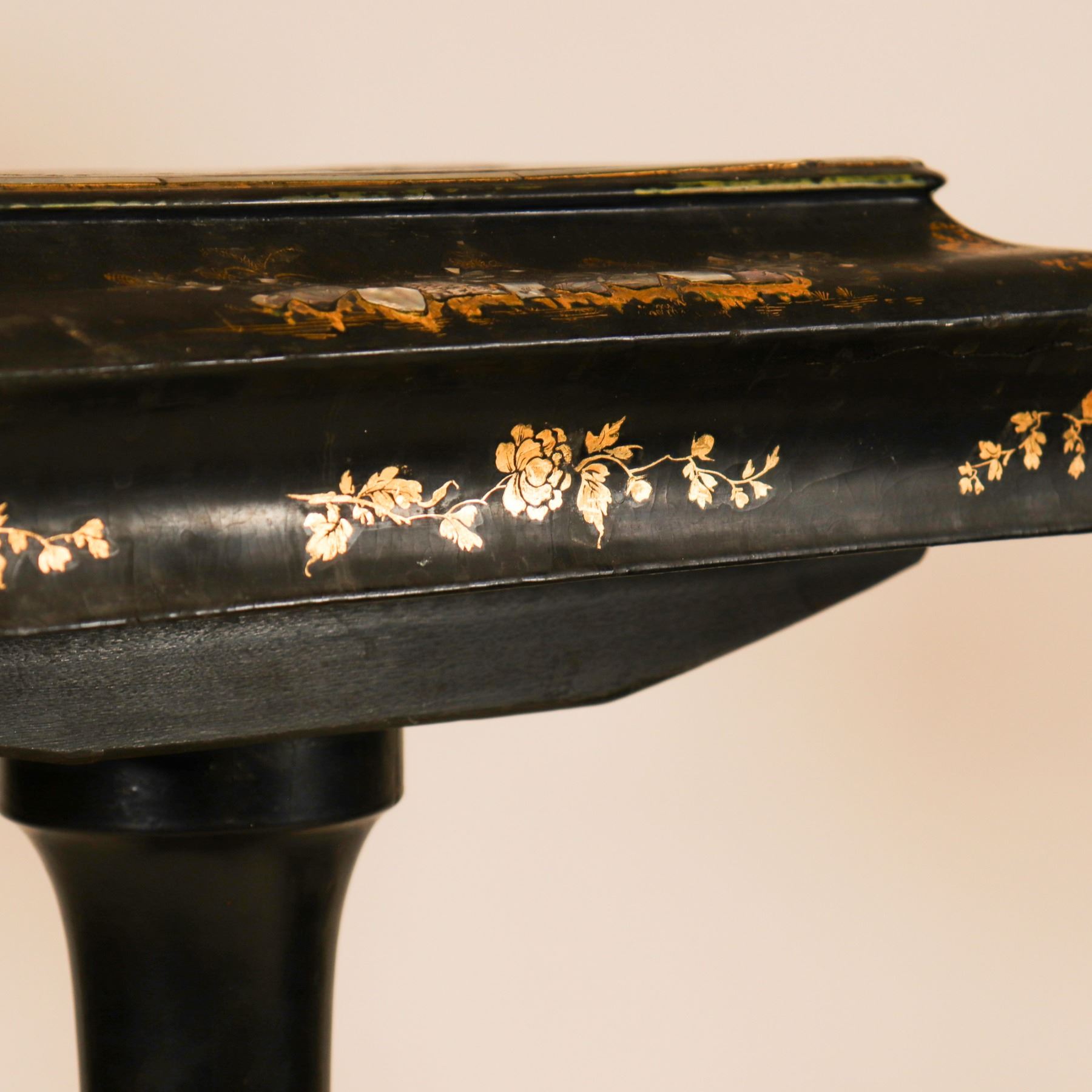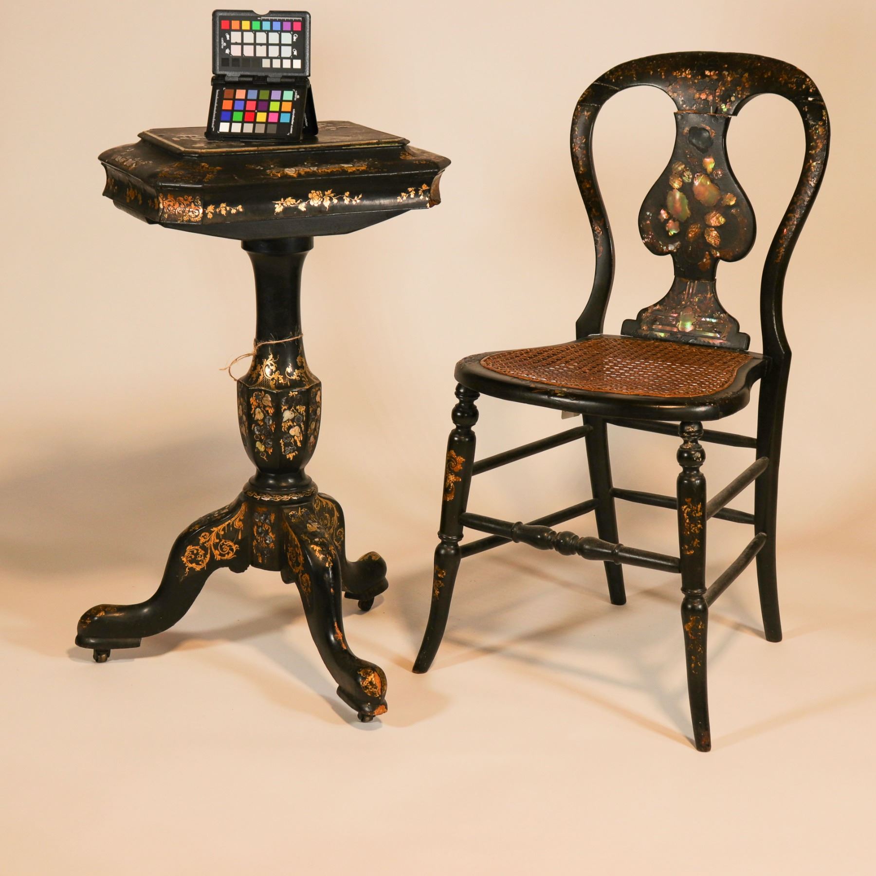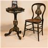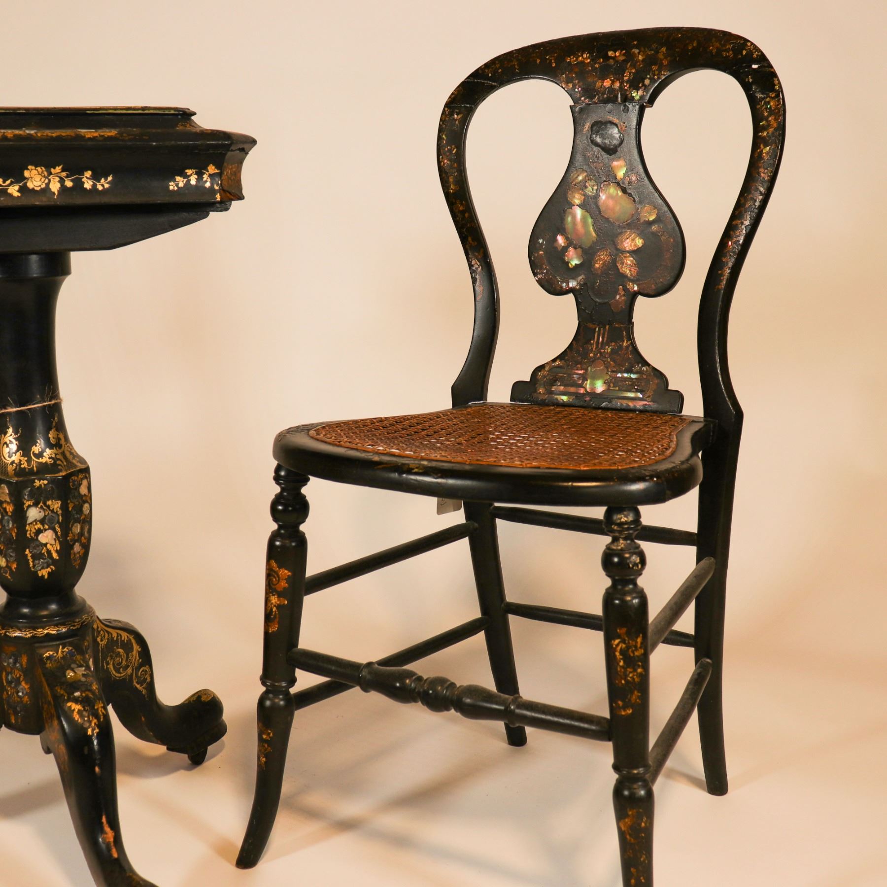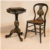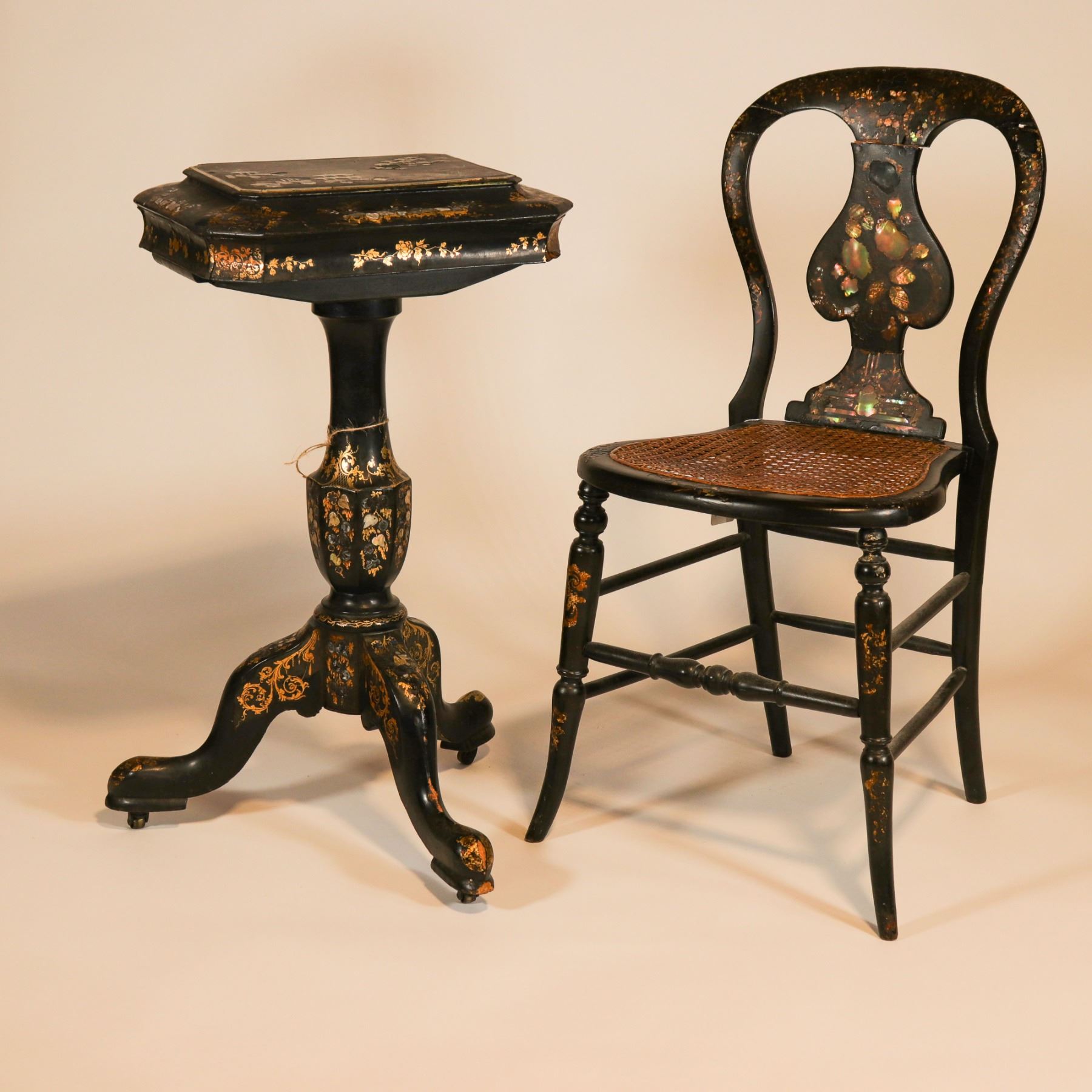 British Japanned and Mother-of-Pearl Work Table and Side Chair, Mid-19th Century