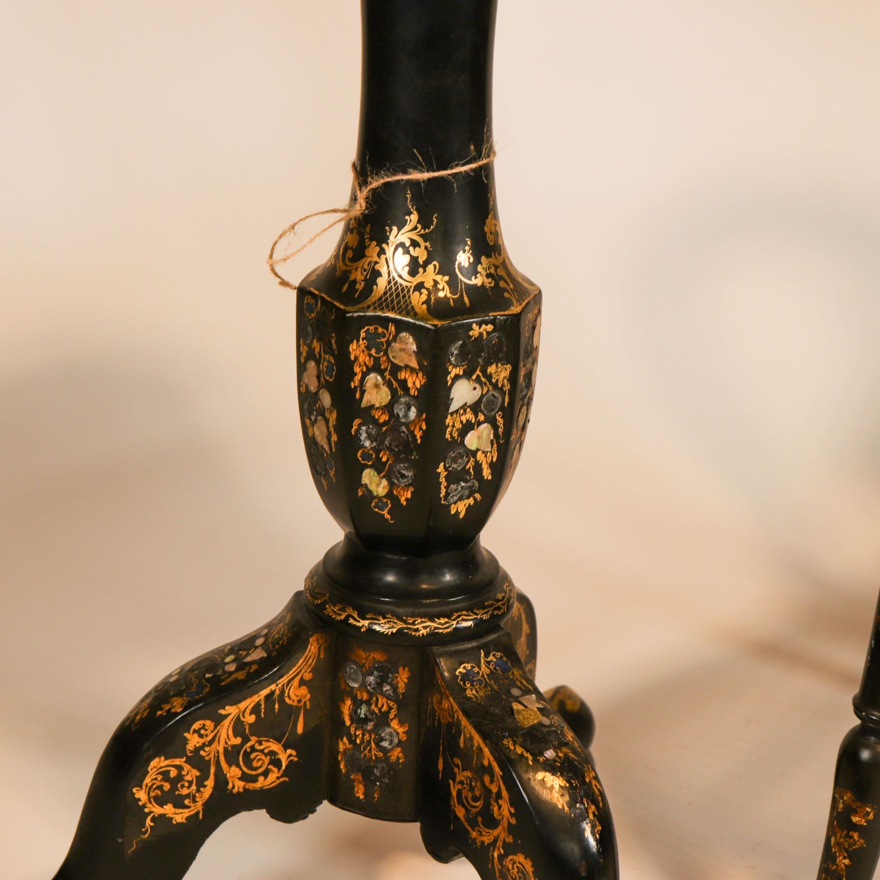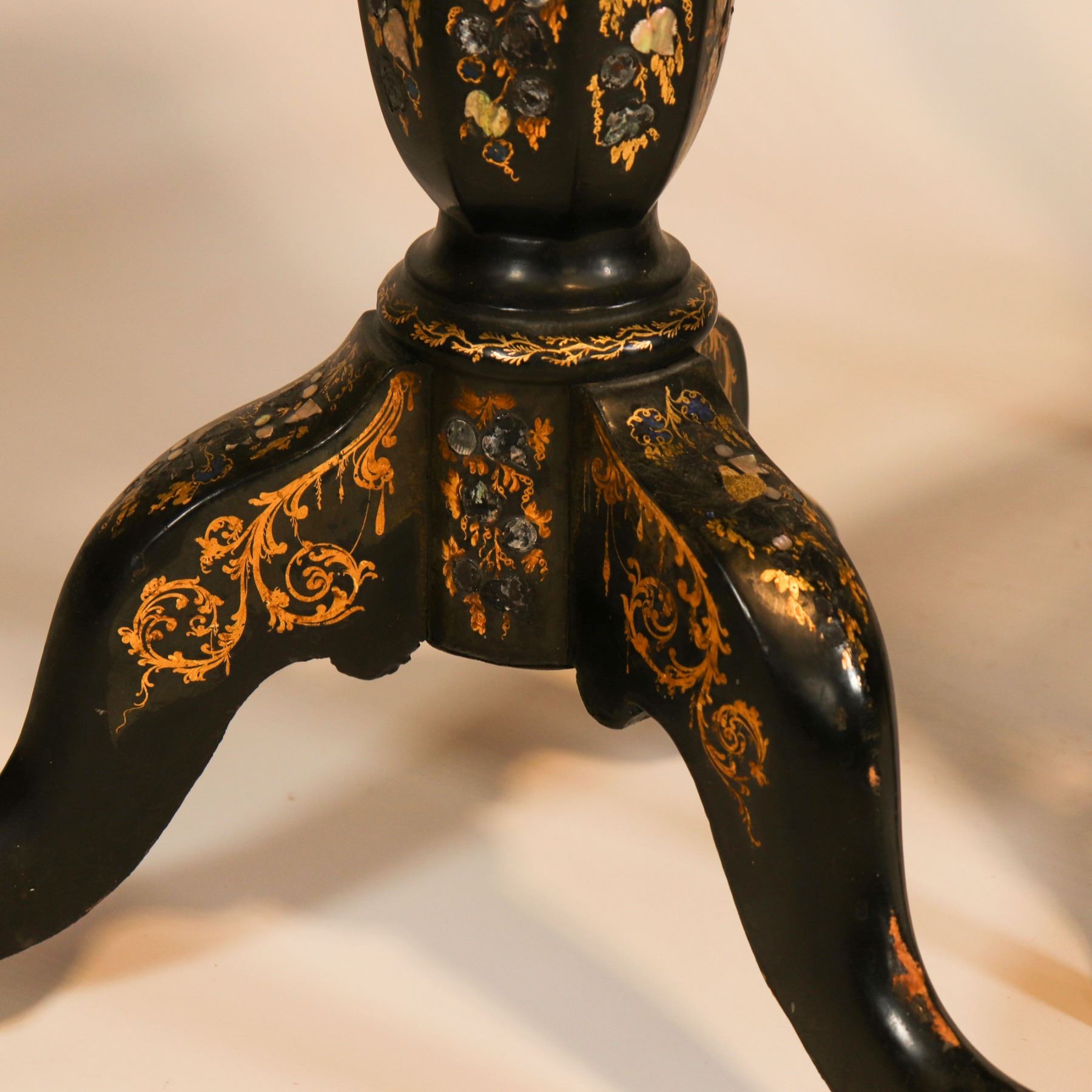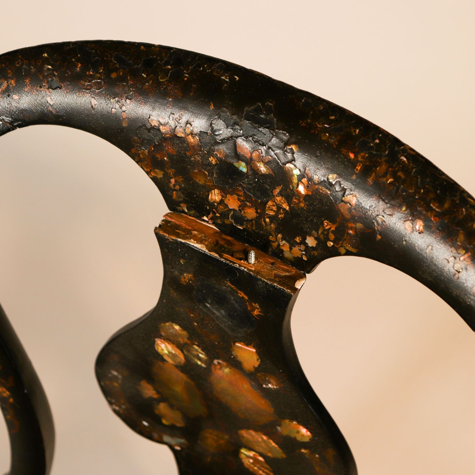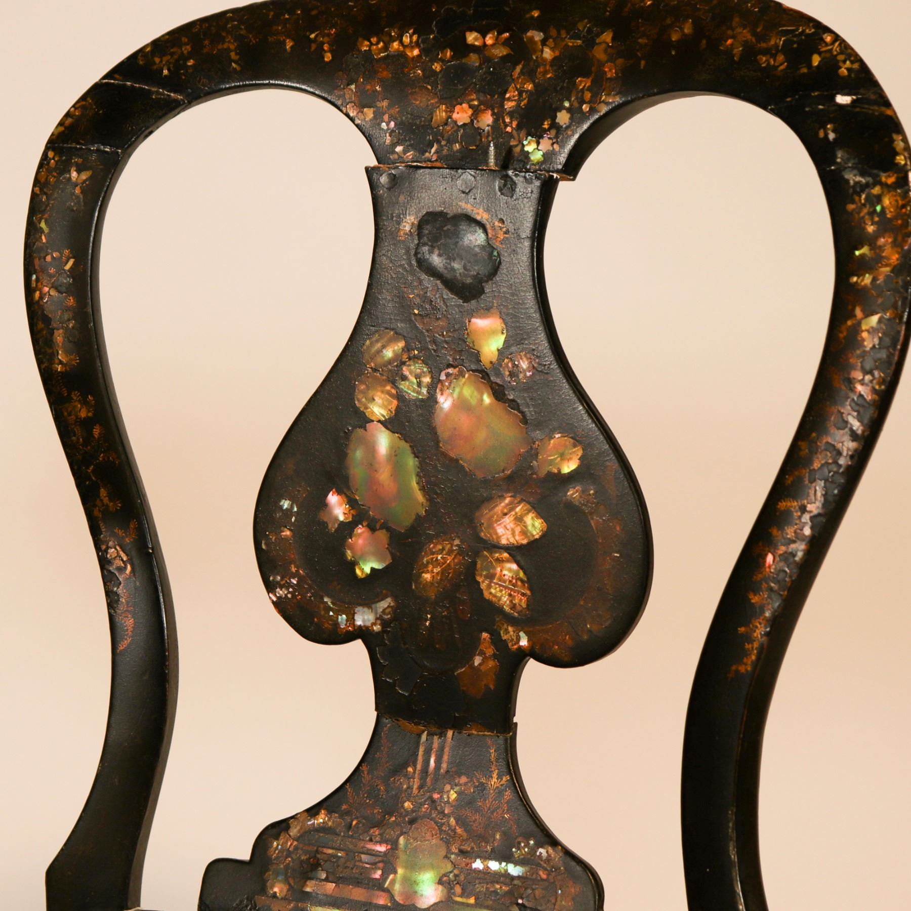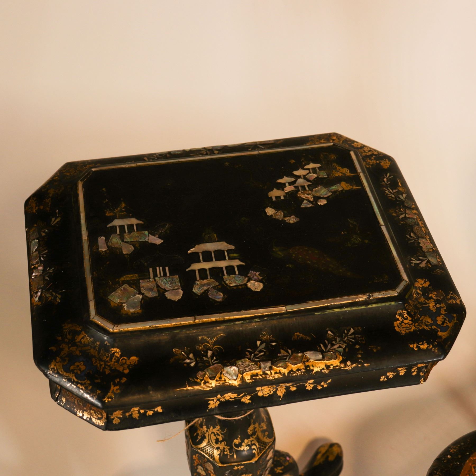 British Japanned and Mother-of-Pearl Work Table and Side Chair, Mid-19th Century