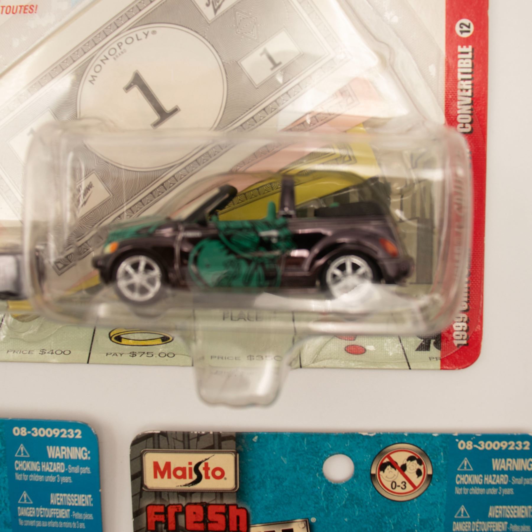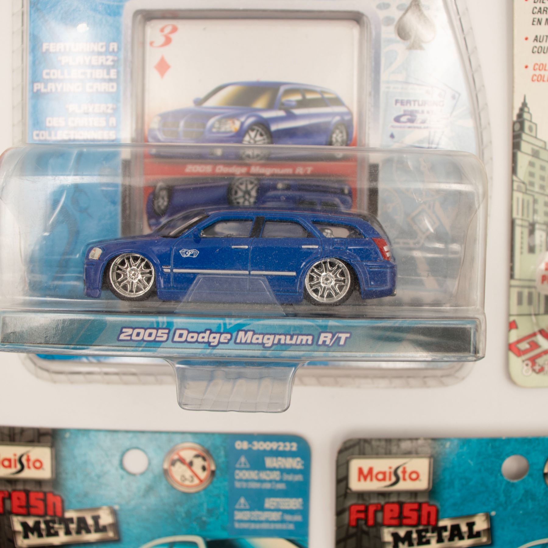 Maisto Fresh Metal (4x UPC 667888050185), Maisto Playerz 2005 Dodge Magnum R/T, Matchbox Dodge Magnum Green, Monopoly 1999 Chrysler Cruiser Convertible.