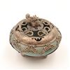 Chinese Carved Jade Censer (Incense Burner) with Silver Filigree Mounts, Republic Period (c. 1920s