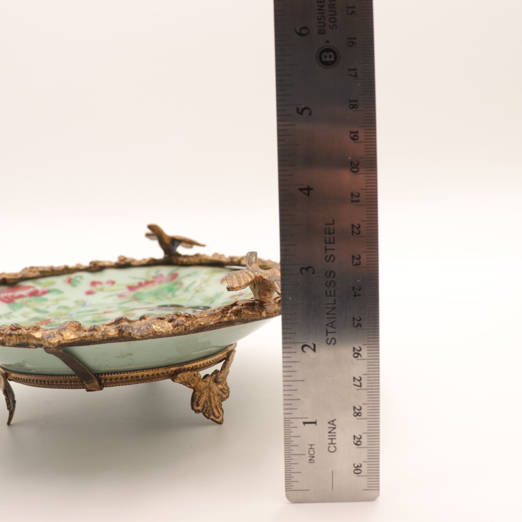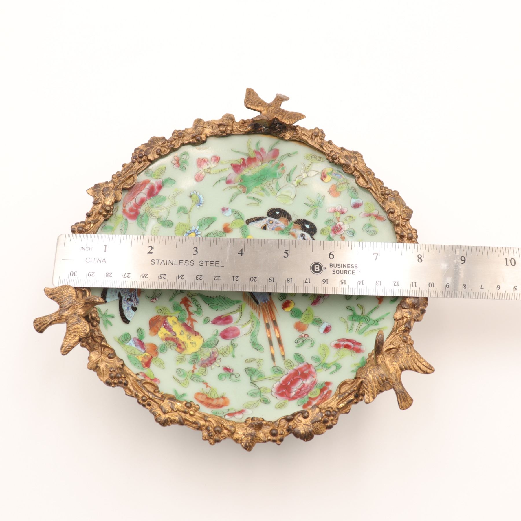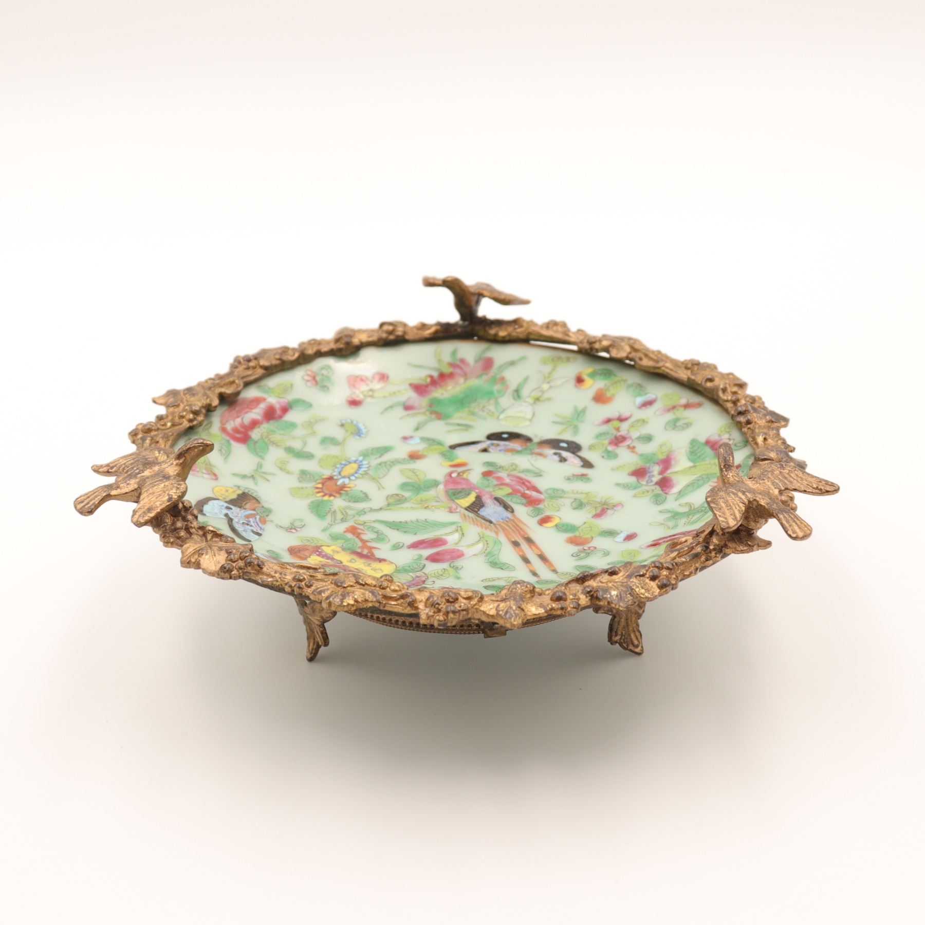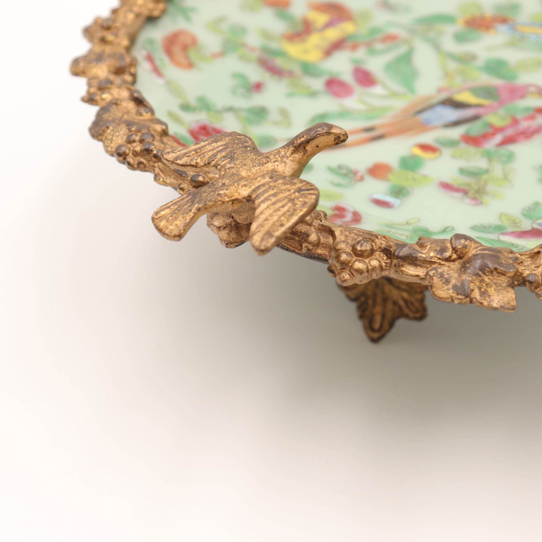 Chinese Celadon and Famille Rose Plate in French Gilt-Bronze Mount, Late 19th Century