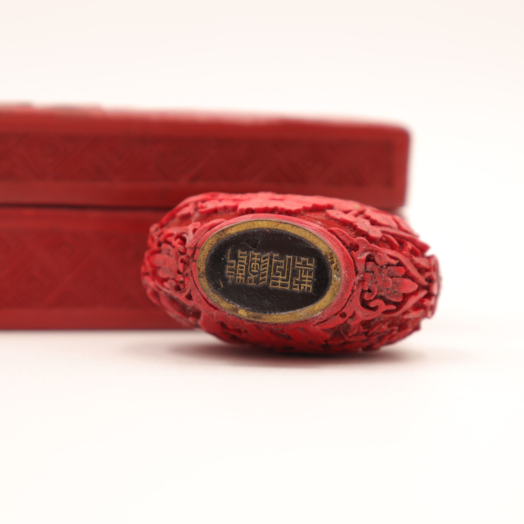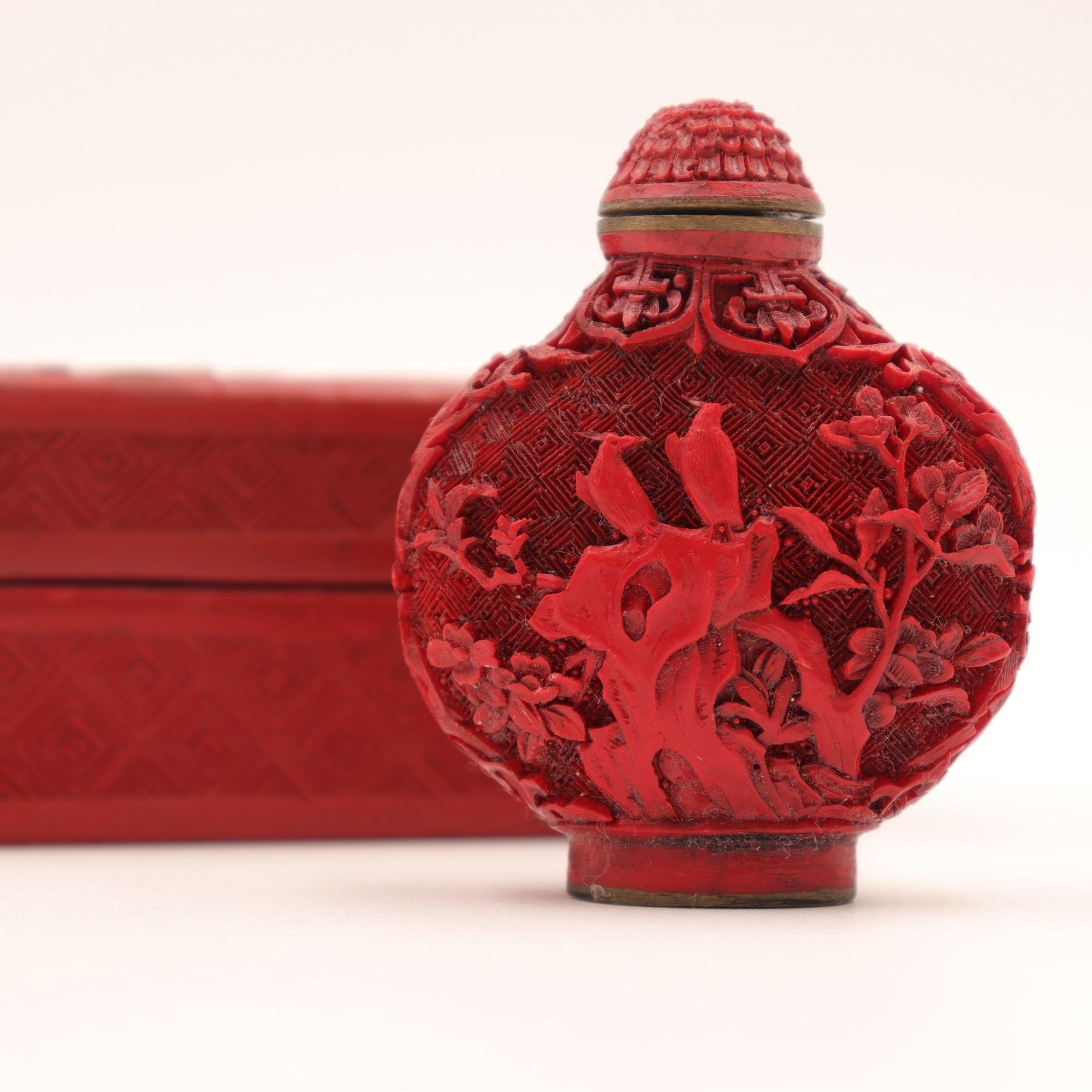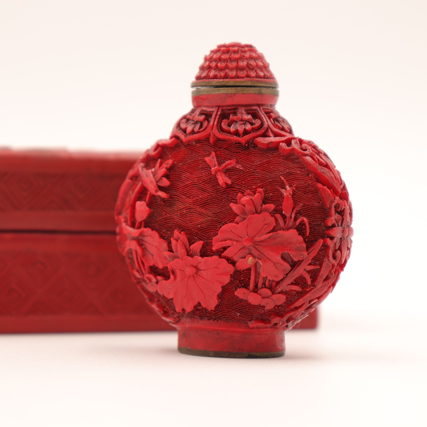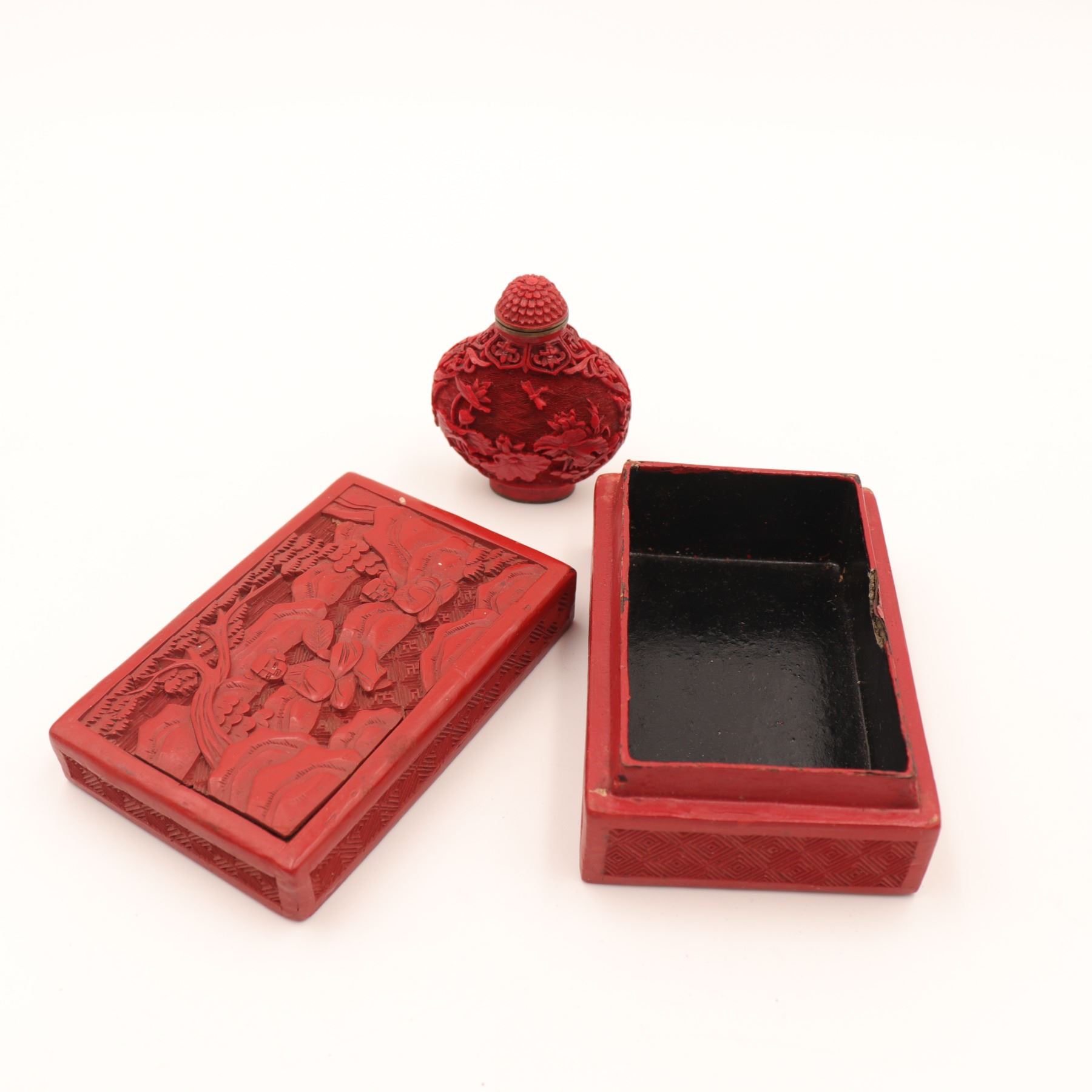 Cinnabar Lacquer Box and Snuff/Perfume Bottle, China