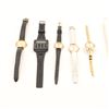 Includes three desirable timepieces: a Seiko quartz with black strap in classic minimalist style, a Citizen quartz with rhinestone bezel and gold-tone bracelet, and an Esso Imperial Oil promotional quartz watch presented in its original box, a rare Canadian advertising collectible. Light wear; untested, sold as-is.