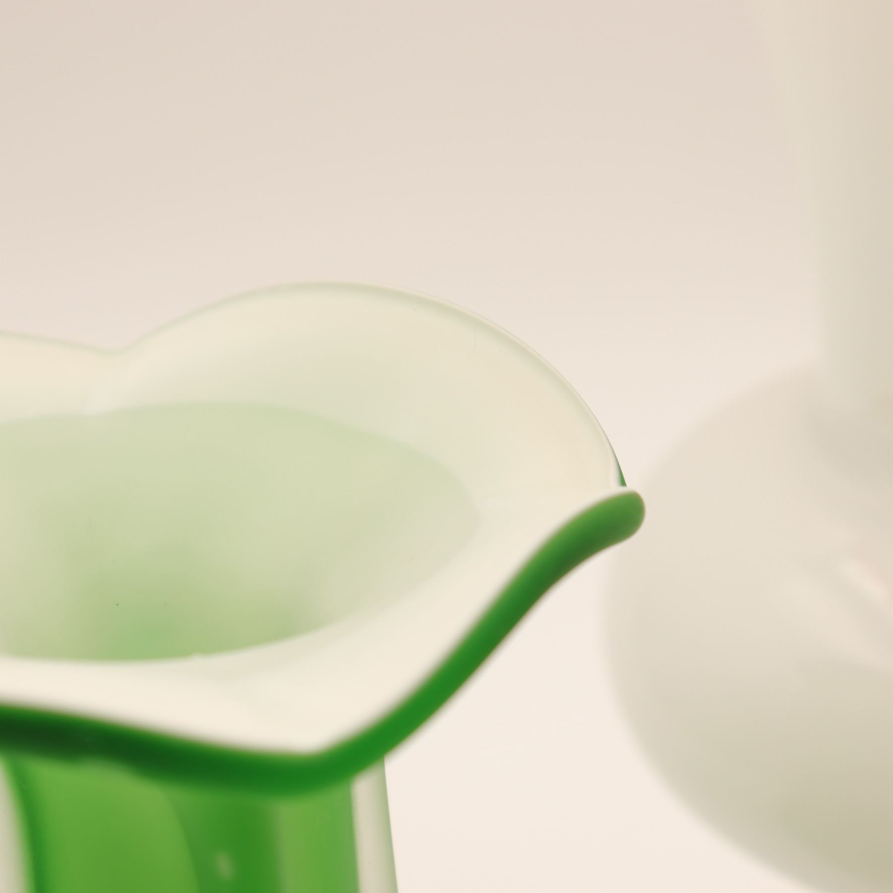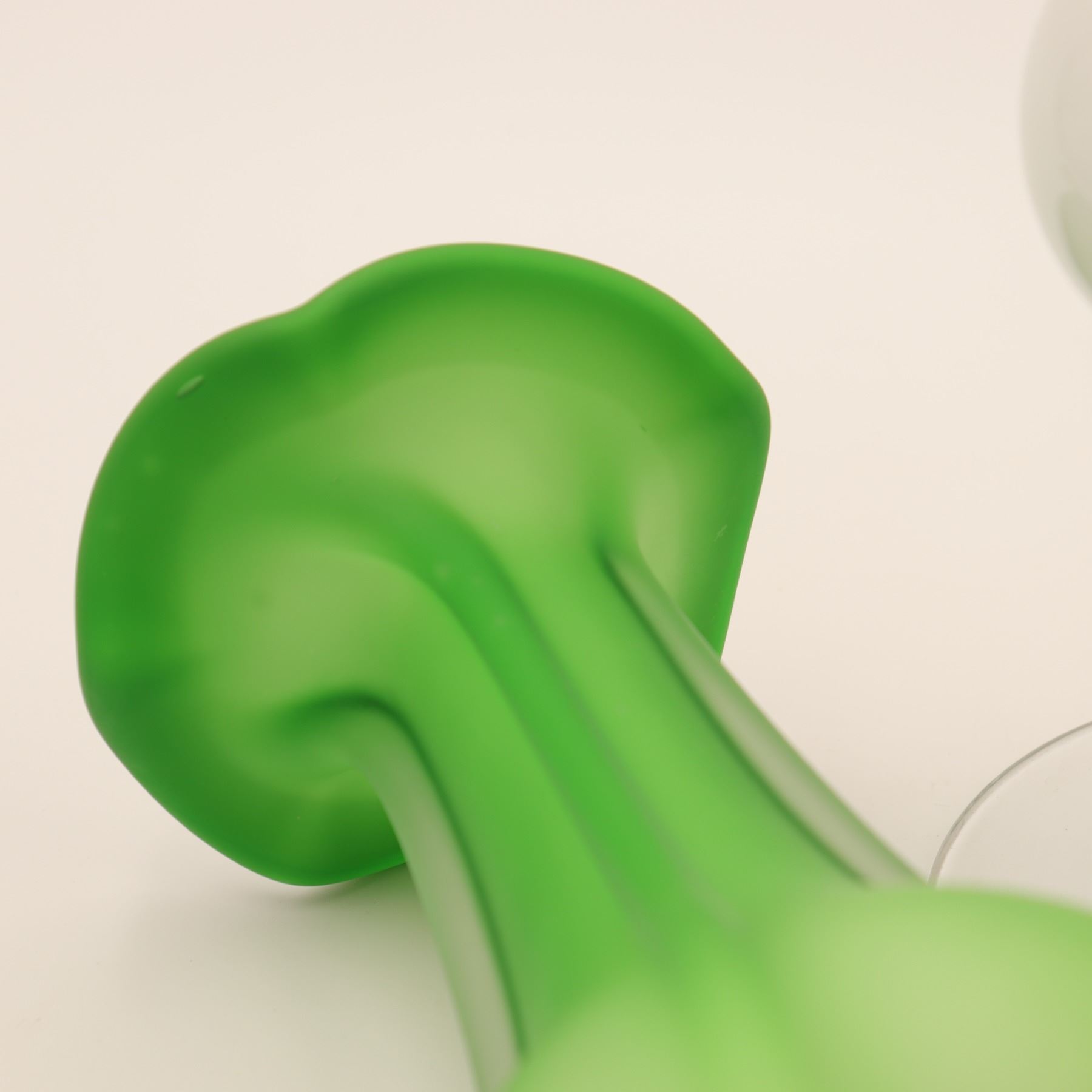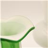 Green Vase: A satin-finished bulbous vase with a ruffled rim and subtle optic ribbing, height approx. 8".