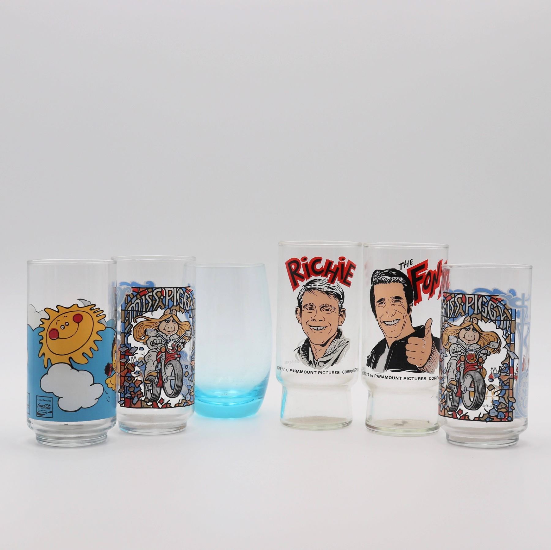 x6 (Fonz, Richie, Miss Piggie, McDonald's early bird, blue glass) with lunch kit