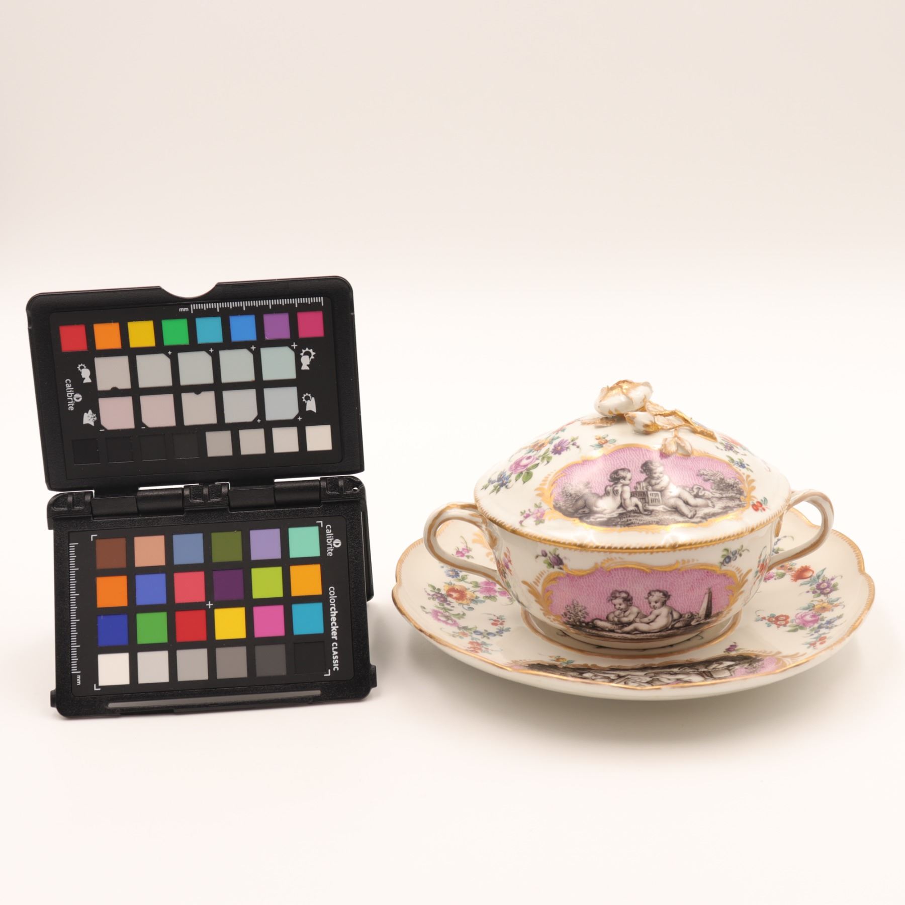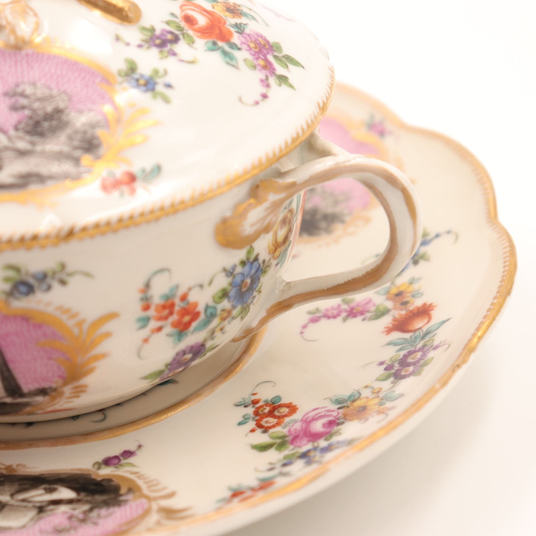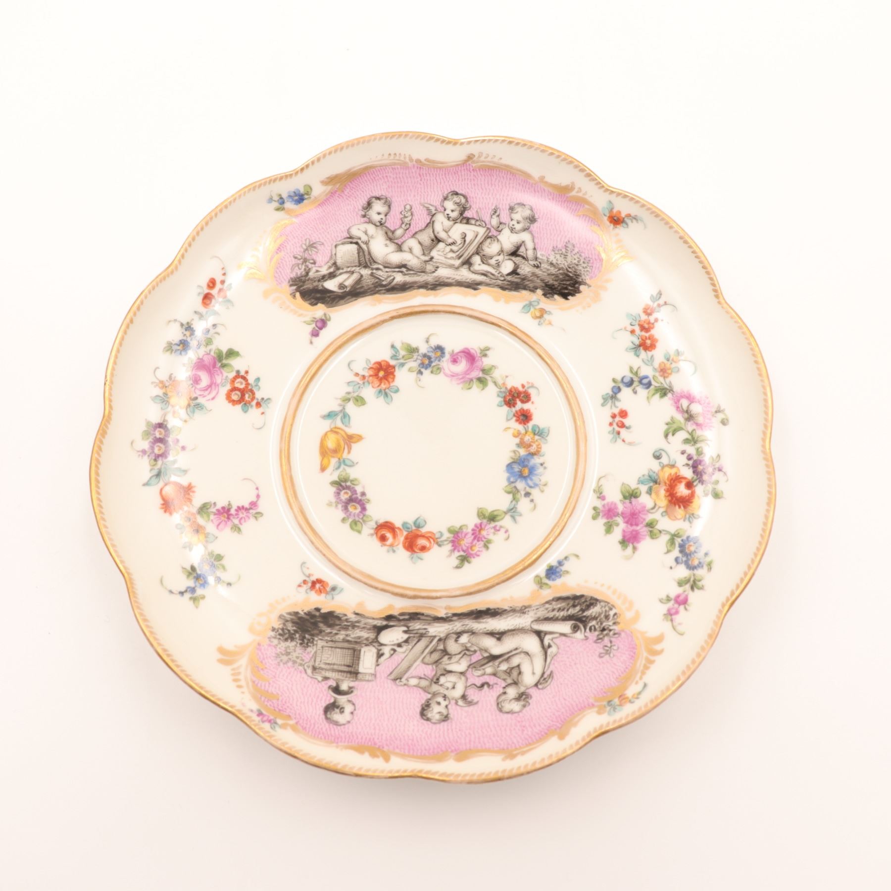 Continental Covered Cup and Saucer with Pink Putti