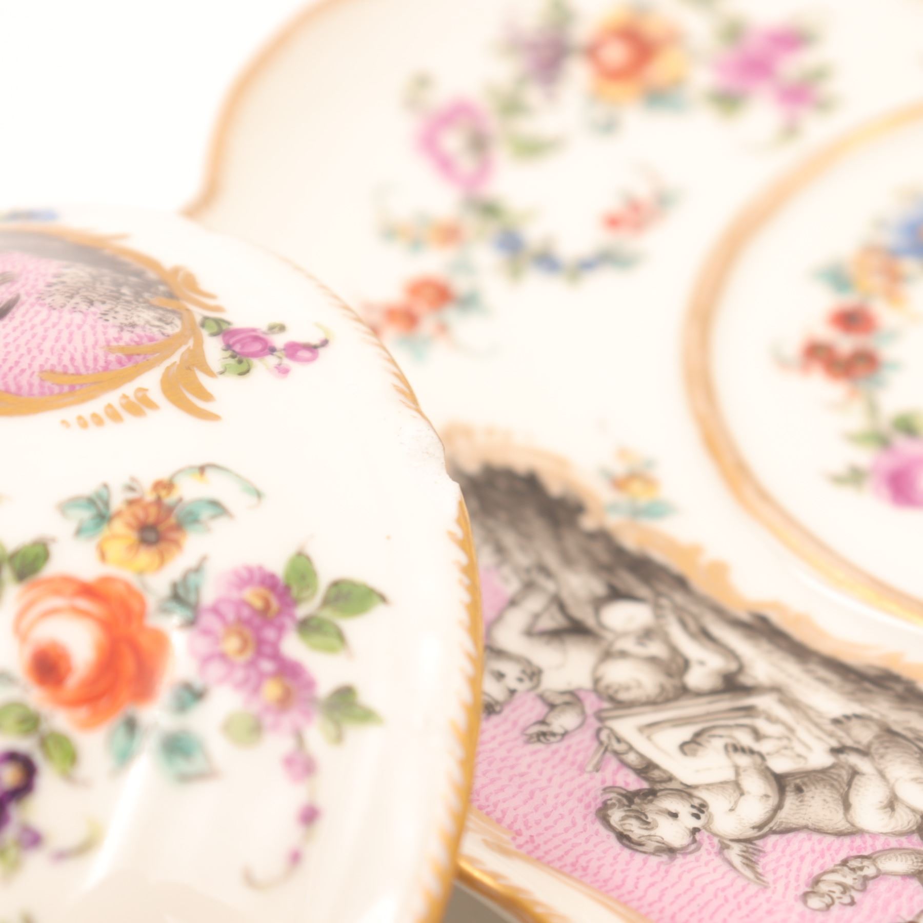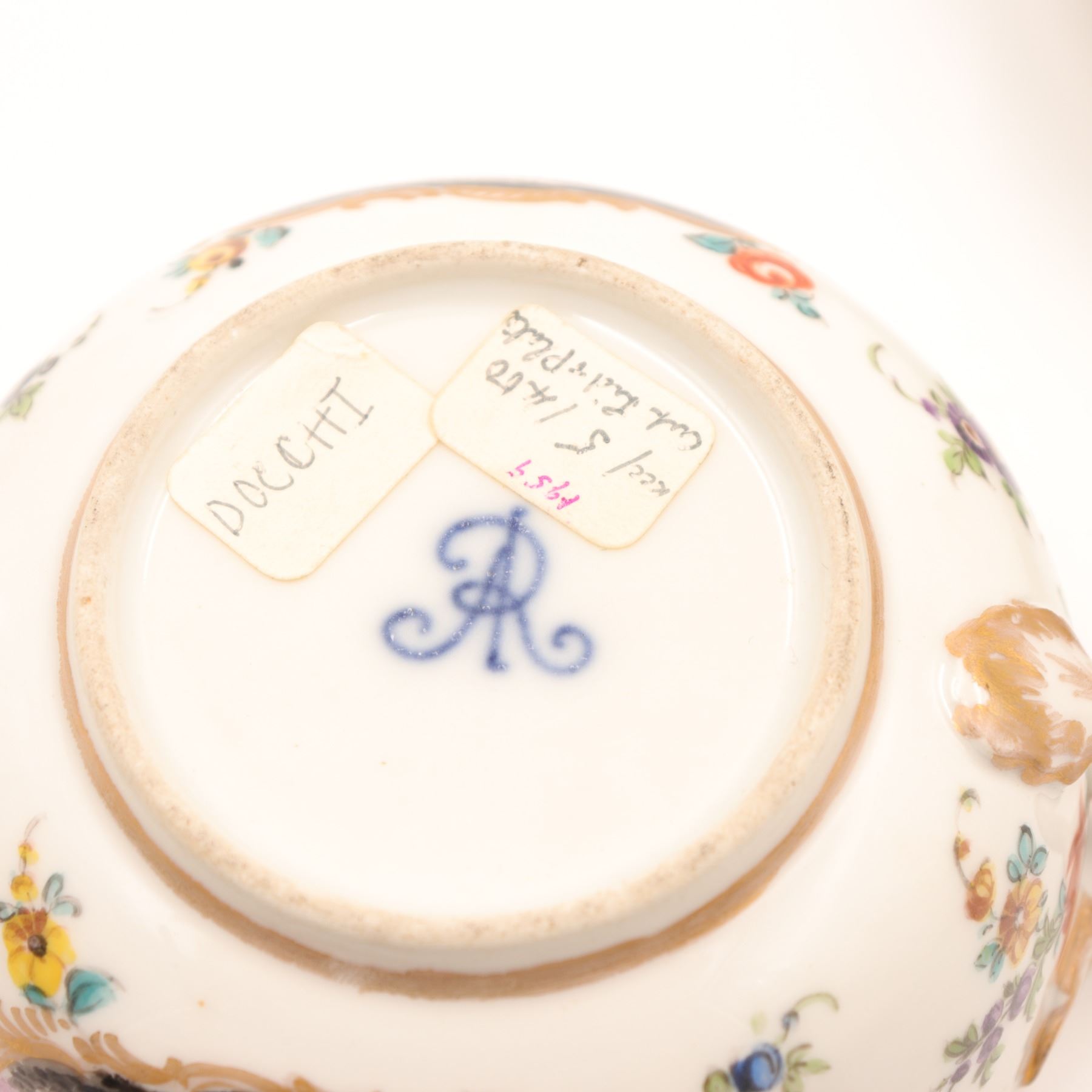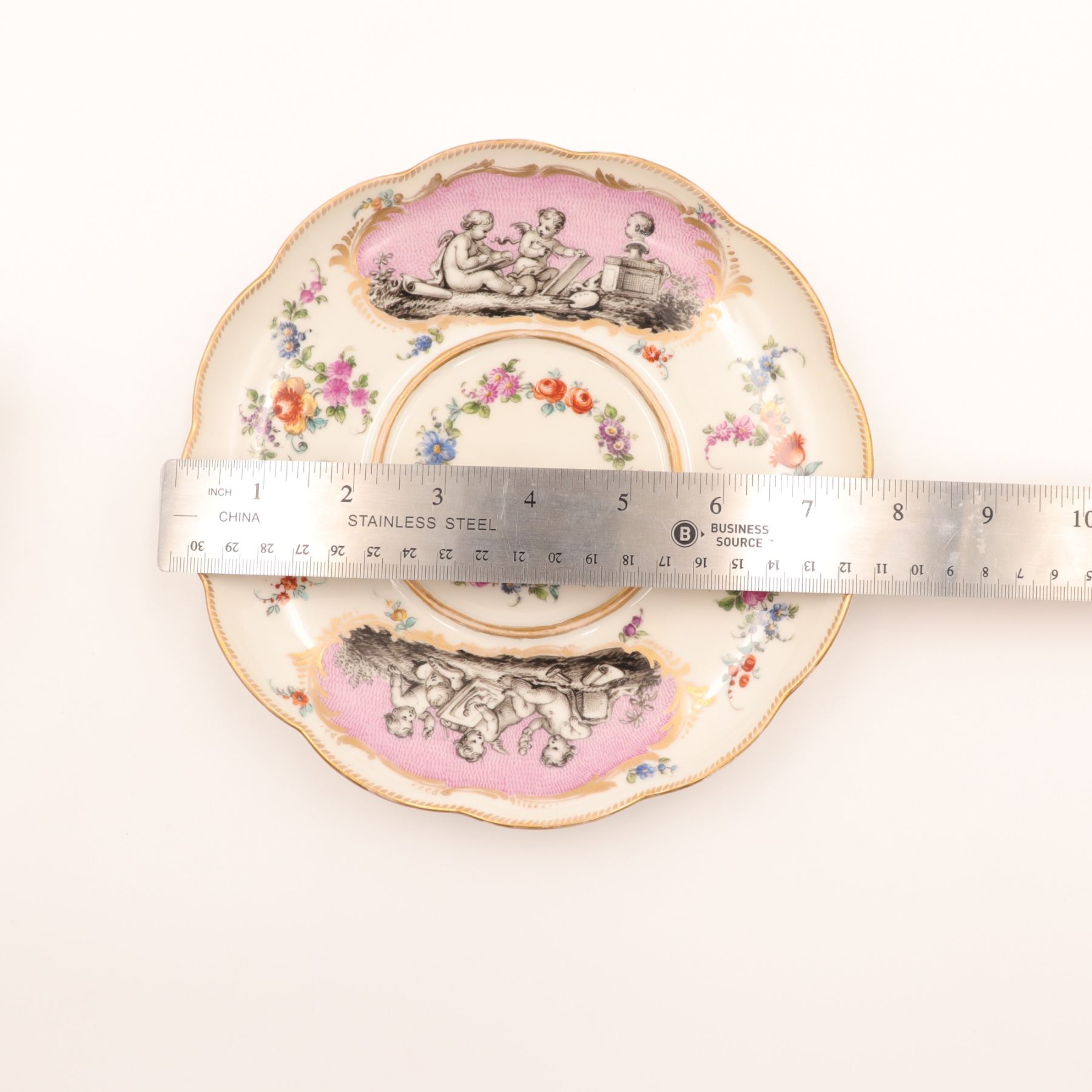 Continental Covered Cup and Saucer with Pink Putti