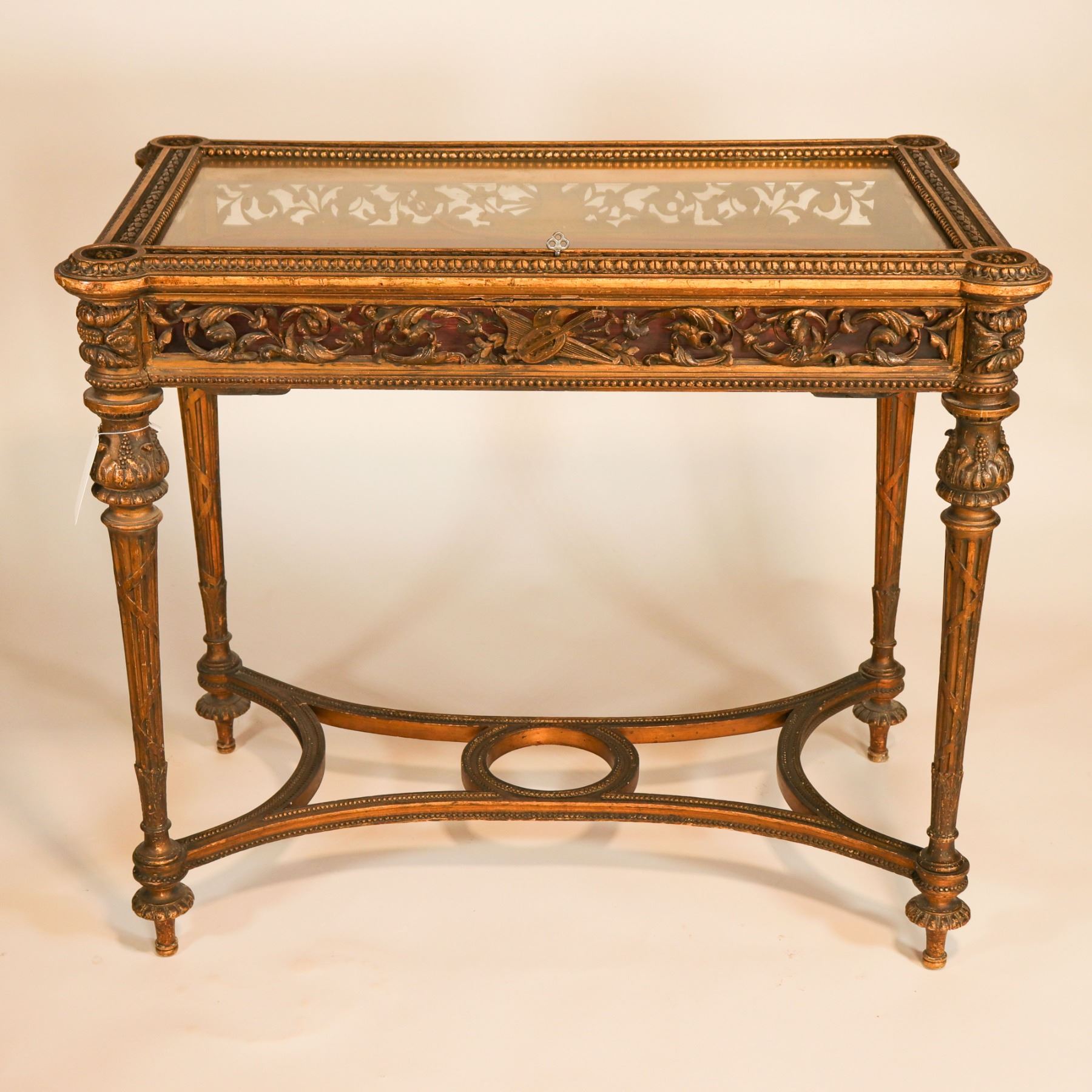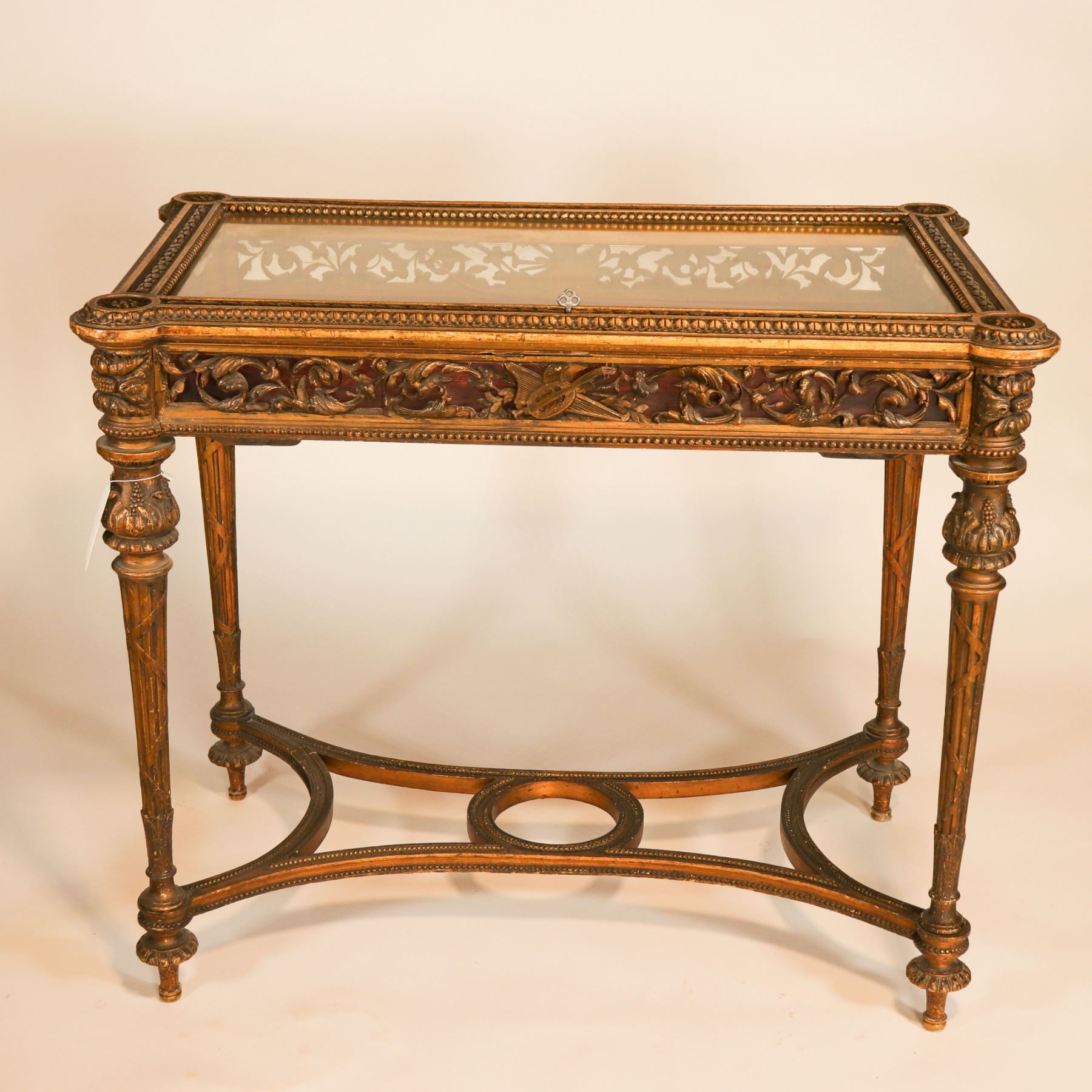 Continental Giltwood and Glass Vitrine Table, Louis XVI Revival, late 19th Century