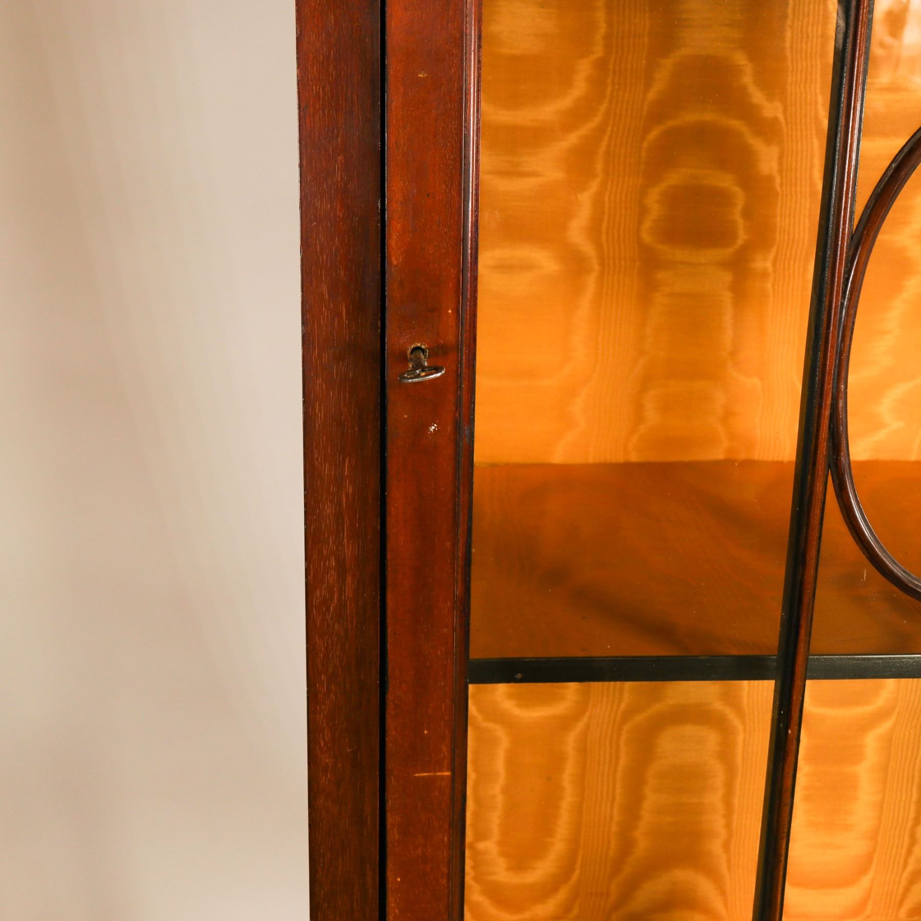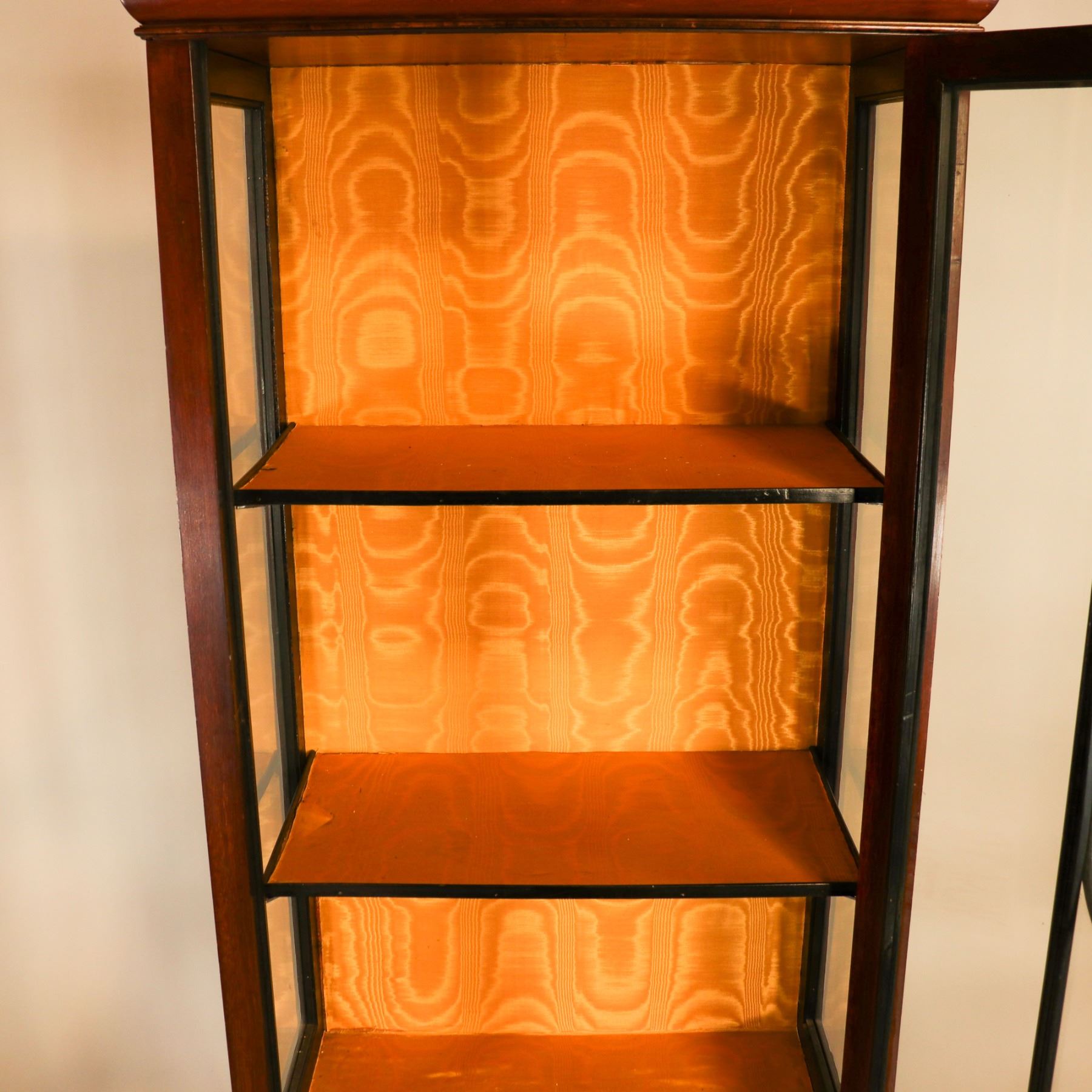 Early 20th Century Mahogany Vitrine Cabinet with Glazed Door and Fabric-Lined Interior