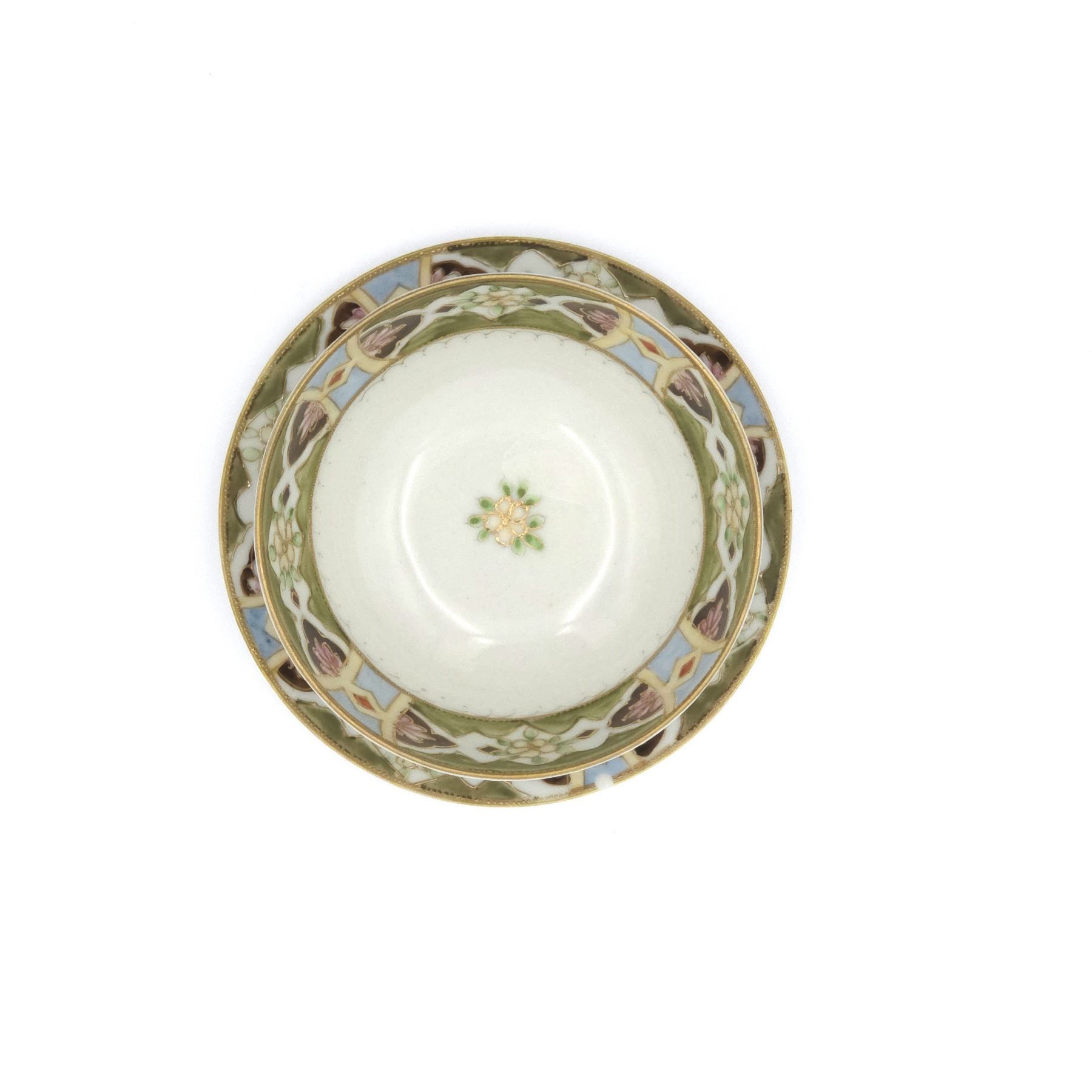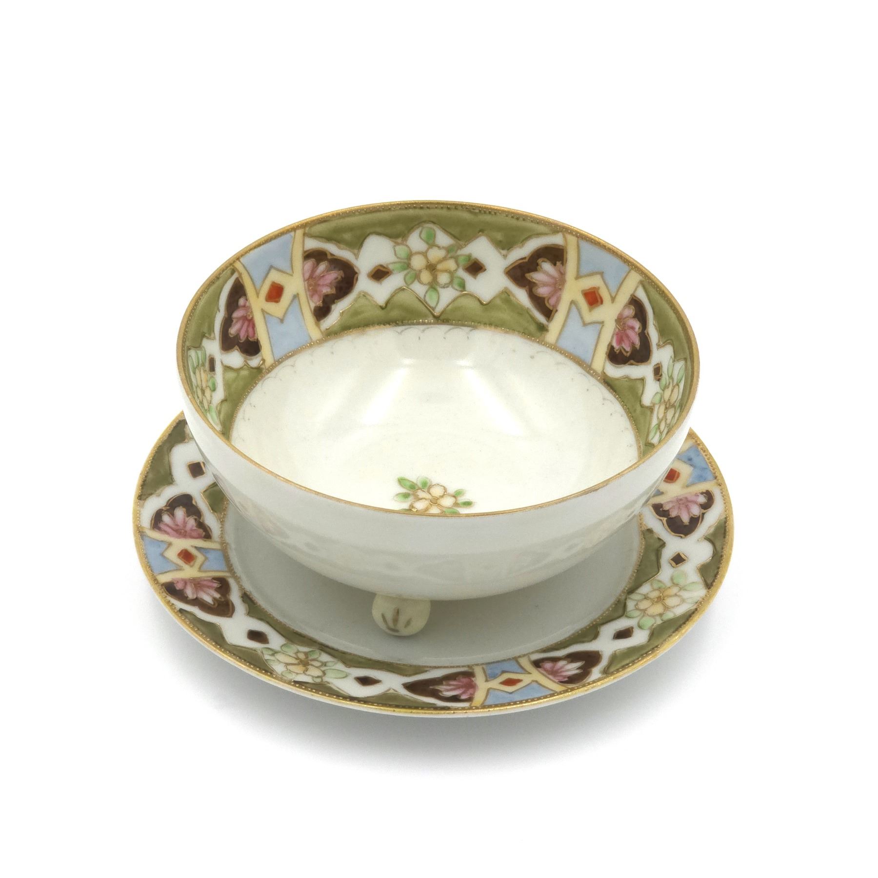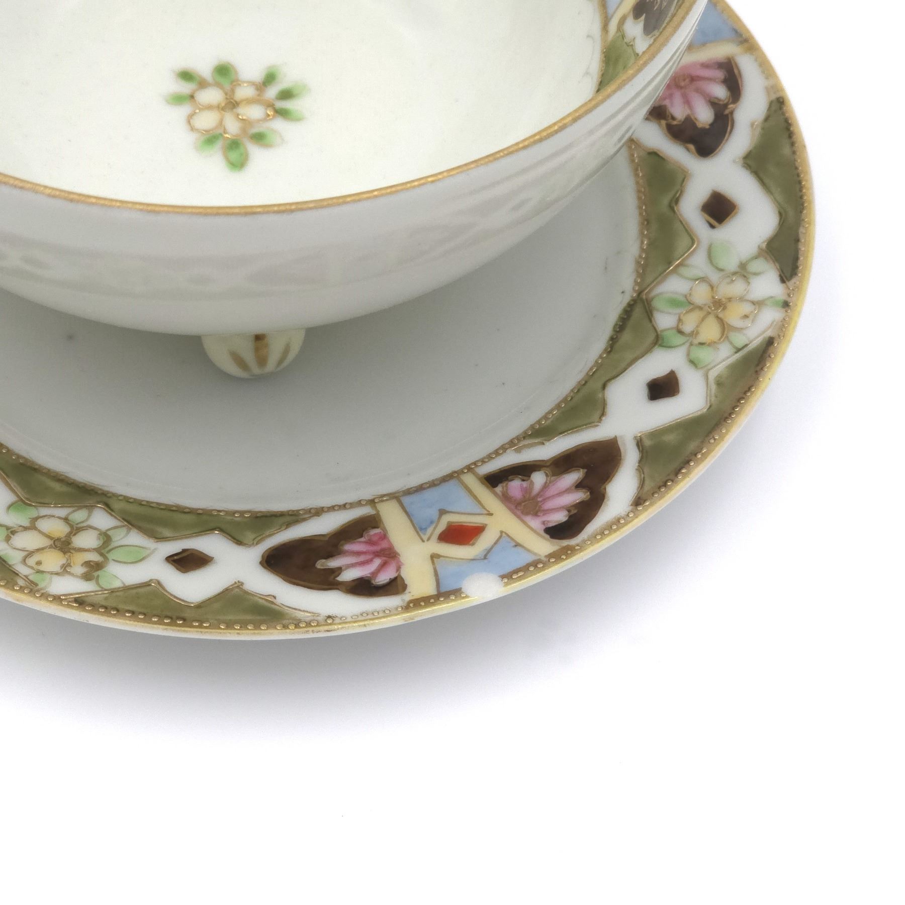 Footed Bowl with Small Plate, hand painted Satsuma Style Japan