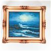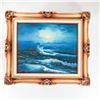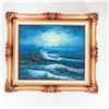 Framed Moonlit Seascape Oil Painting