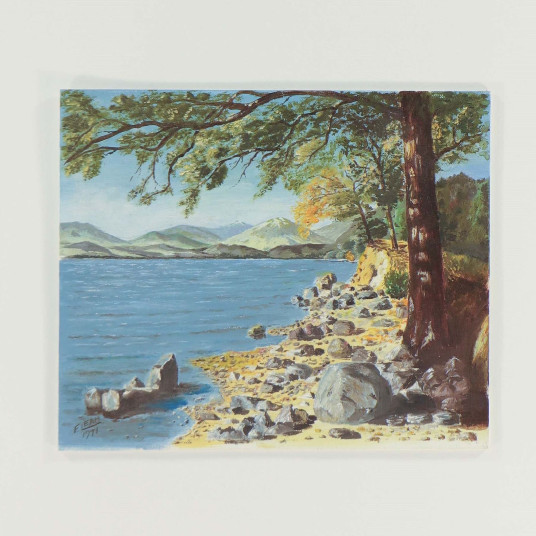 Frank Leah (attrib.) — Shore of Loch Venachar, Trossachs (oil on board), 1971