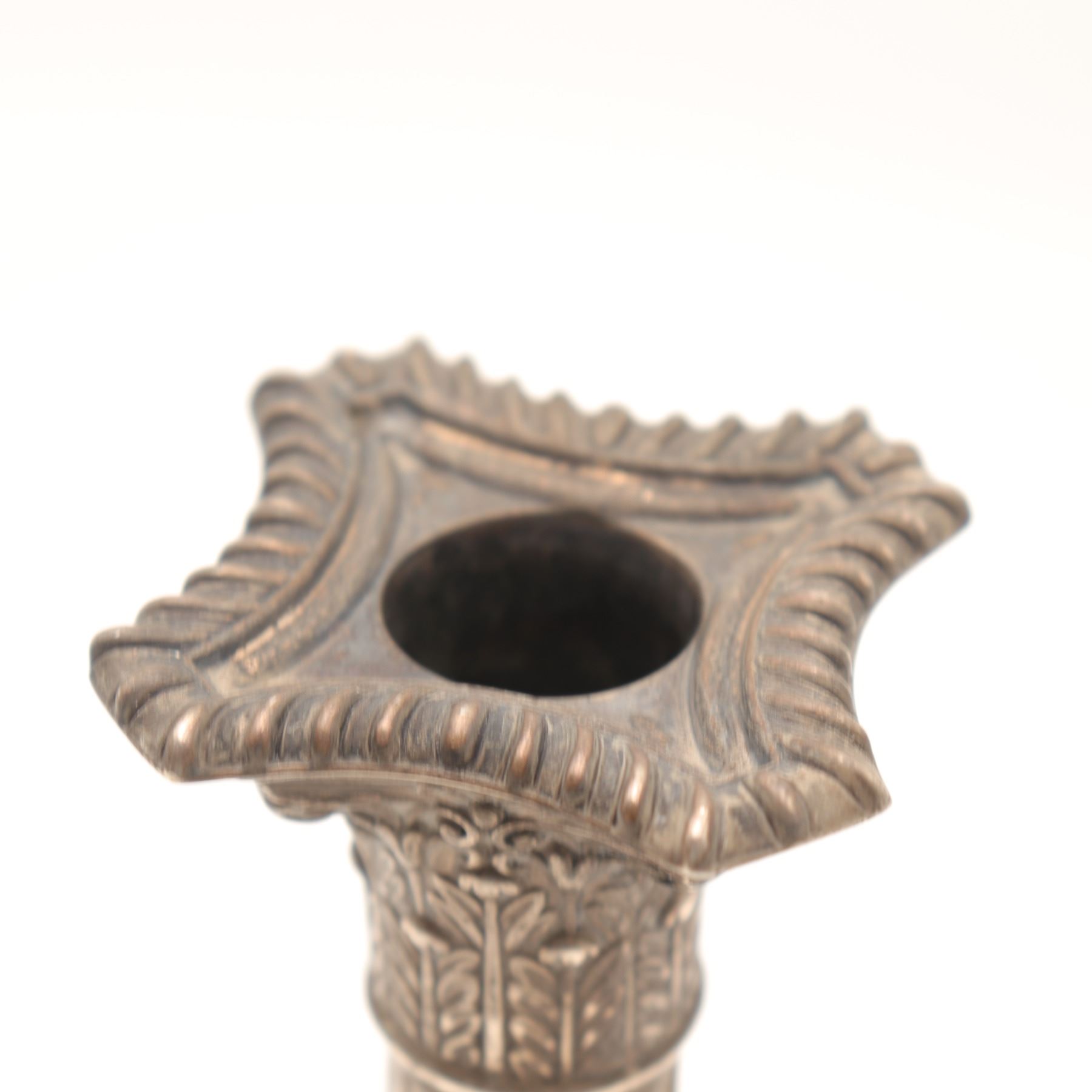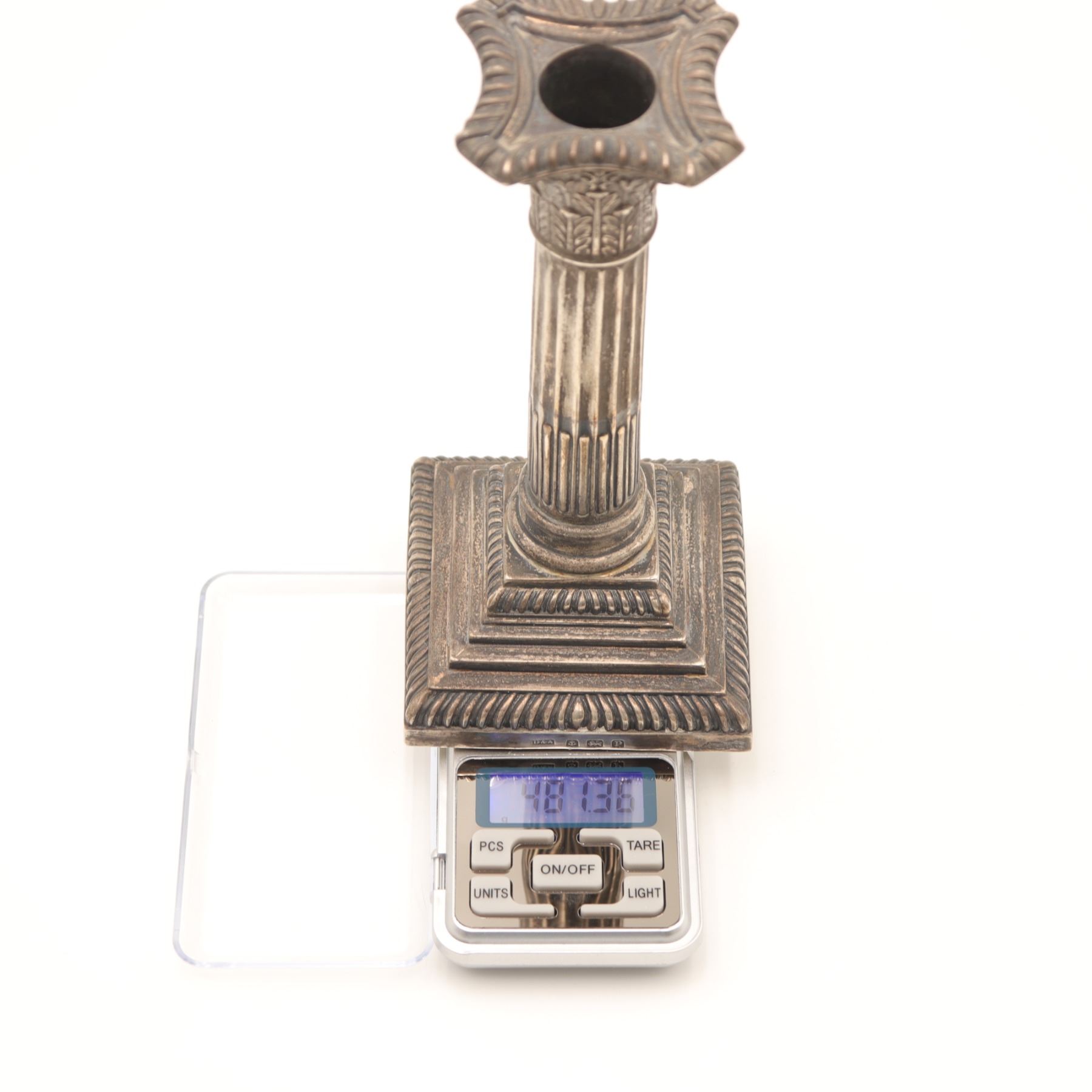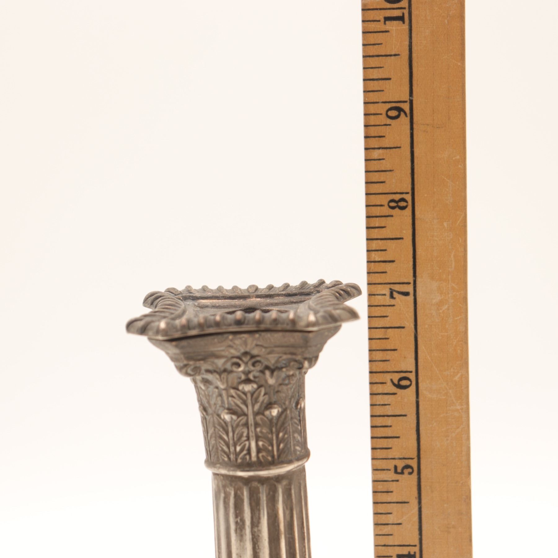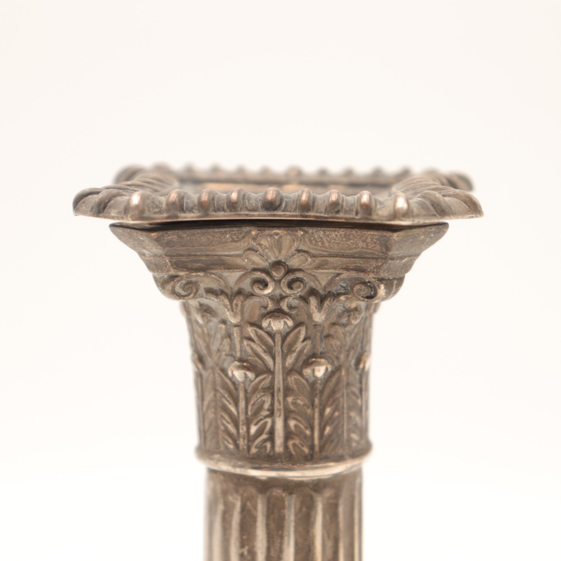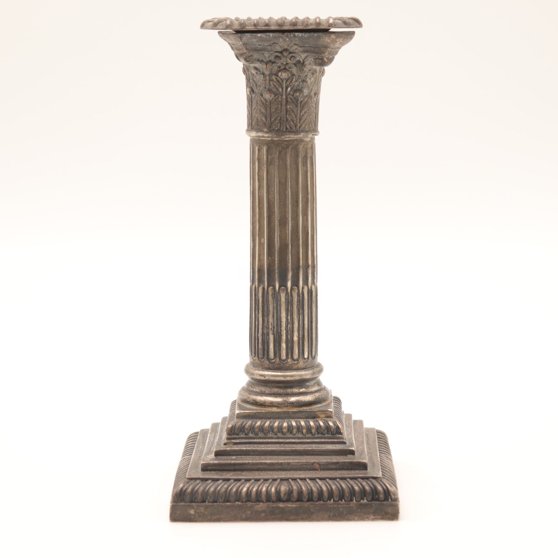 George V Sterling Silver Corinthian Column Candlestick, Daniel & Arter, Birmingham 1914