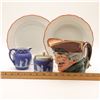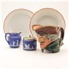 Group of Royal Doulton character jug, Meissen plates and jasperware-style ceramics