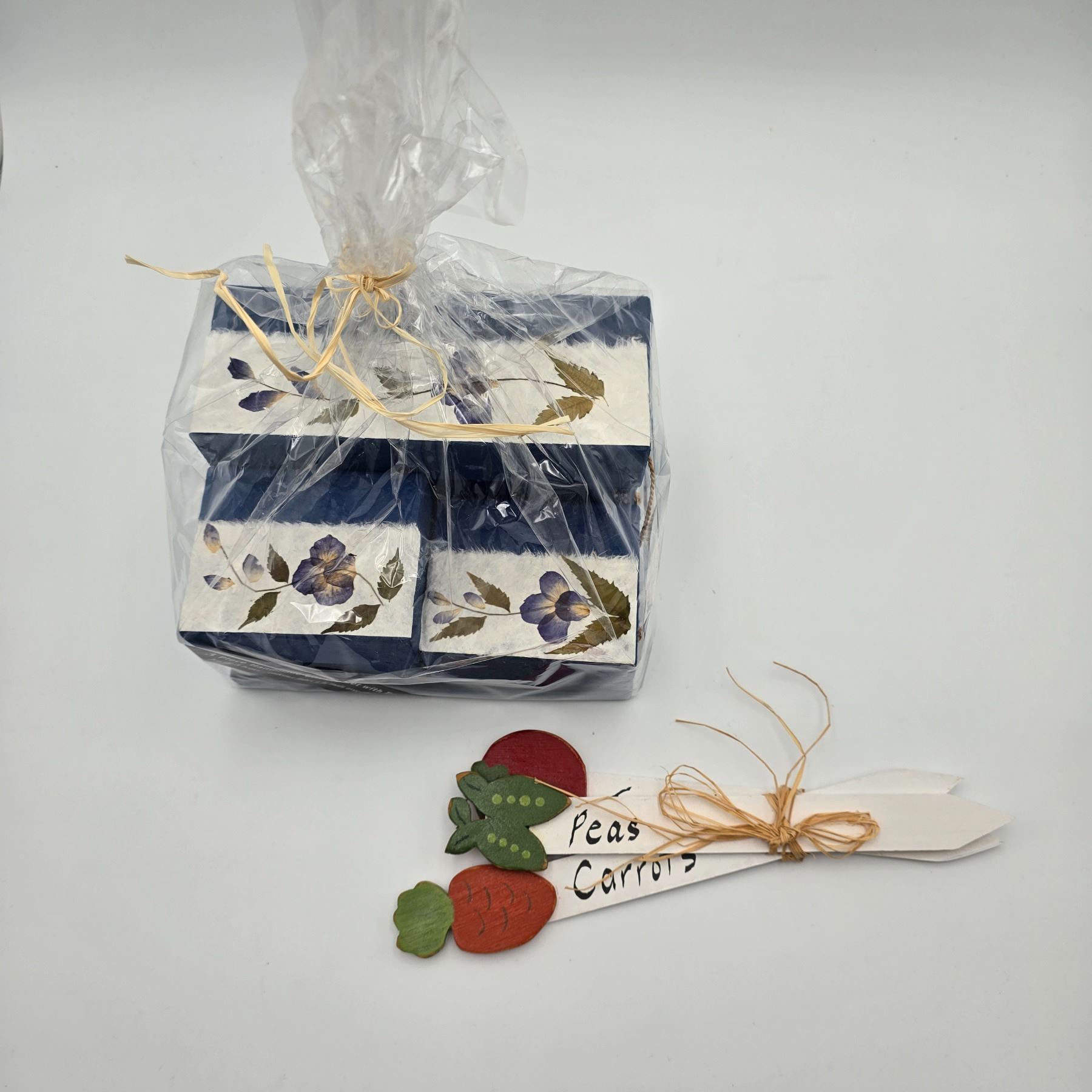 3 piece handmade gift box set with tray (unboxed) and garden sticks