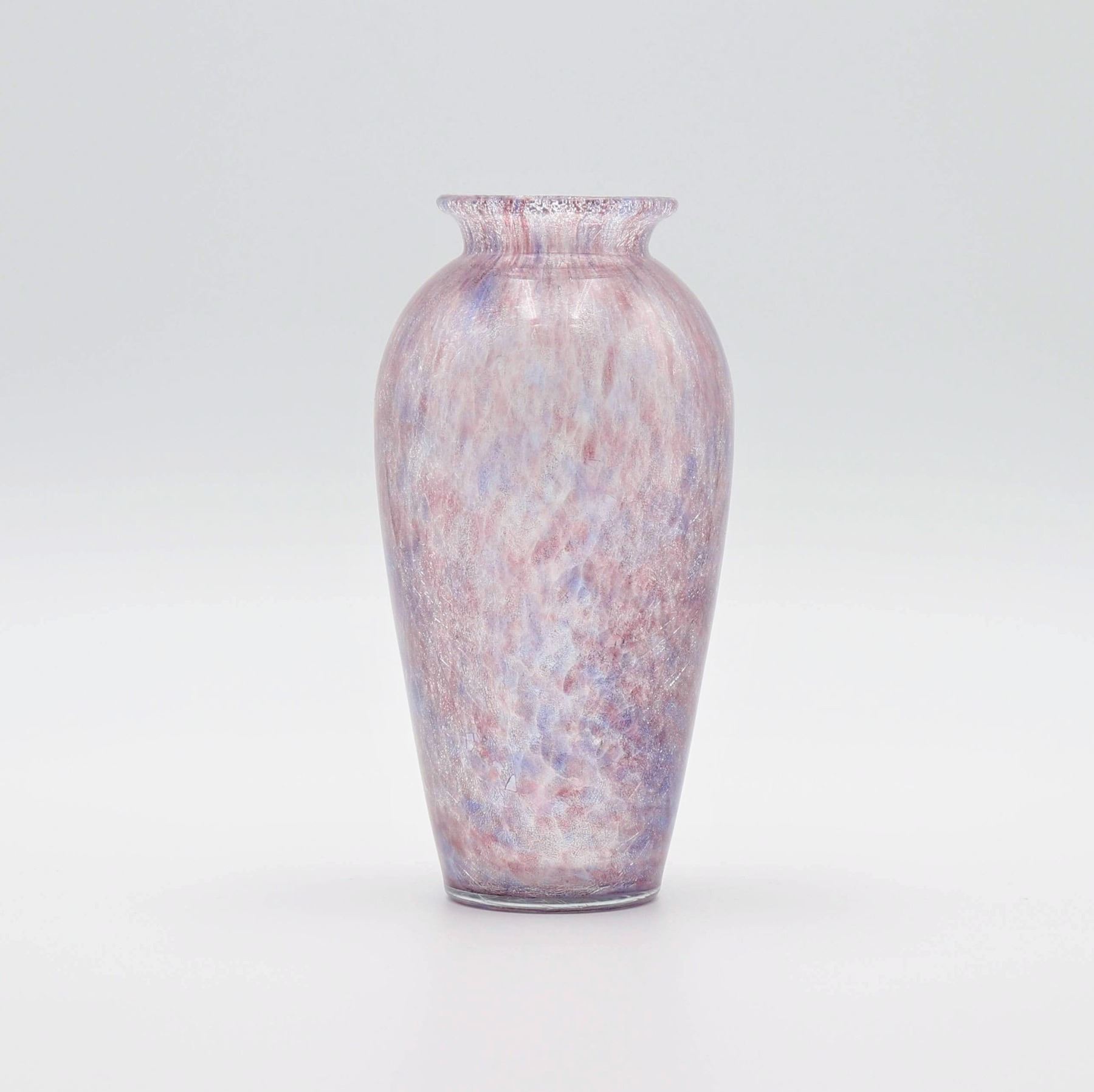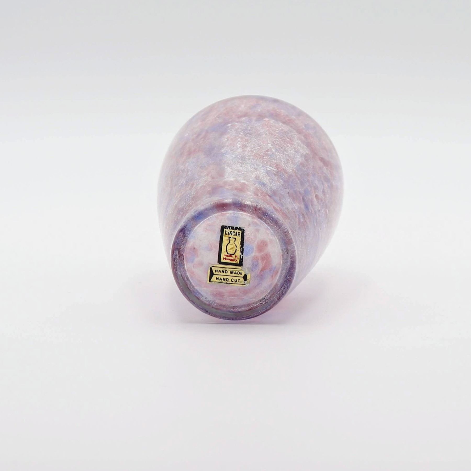 Purple colour, crackled glass vase. Made in Hungary KARSAR hand cut
