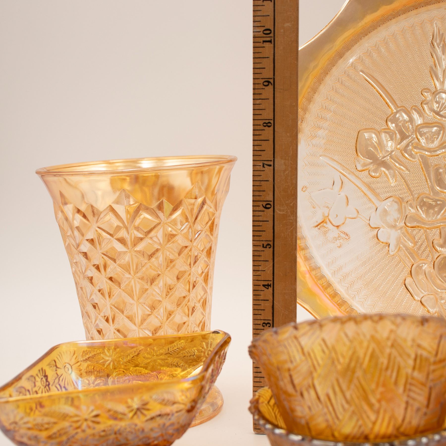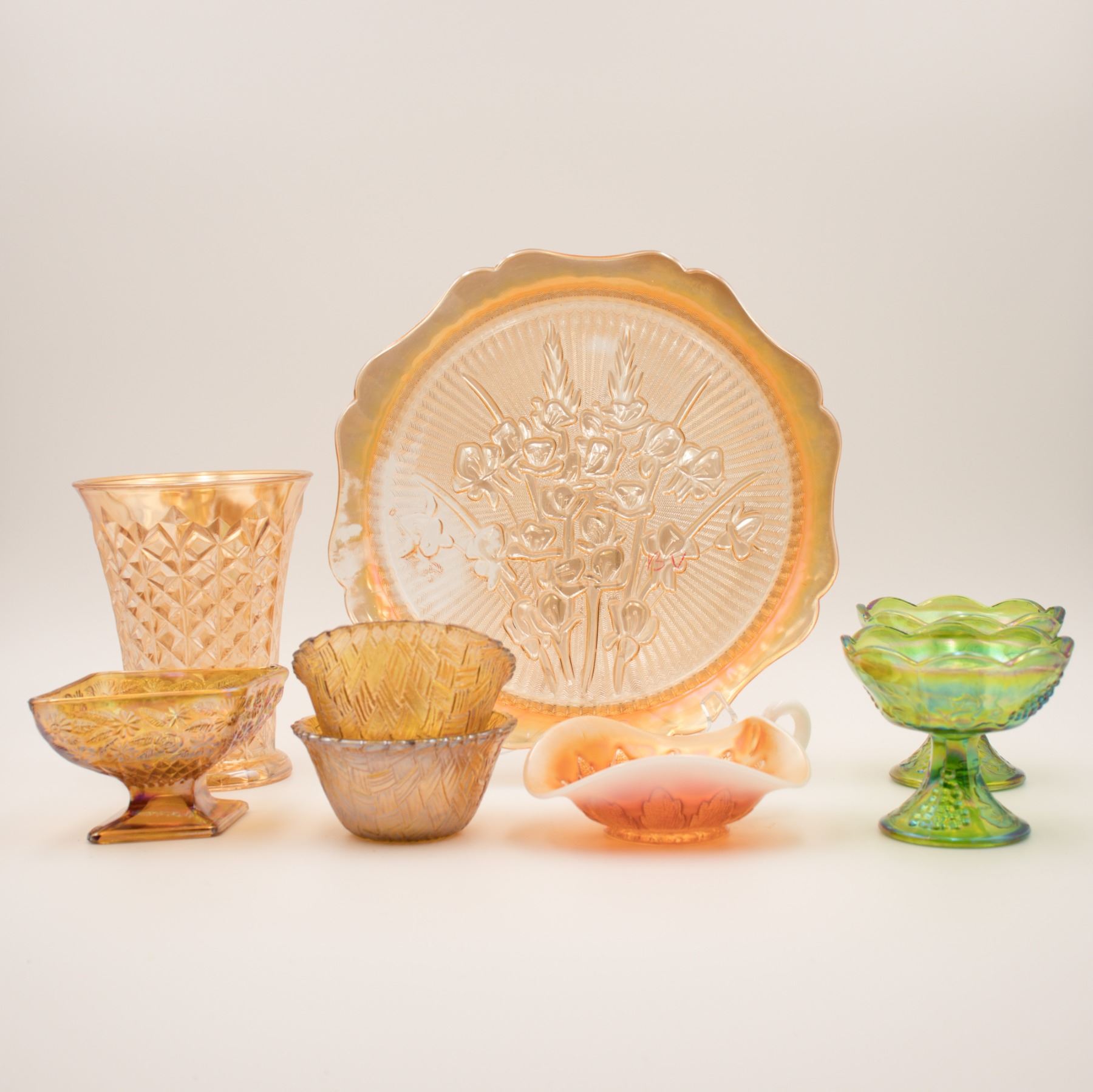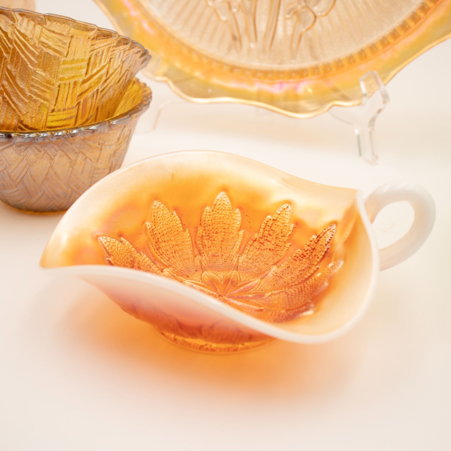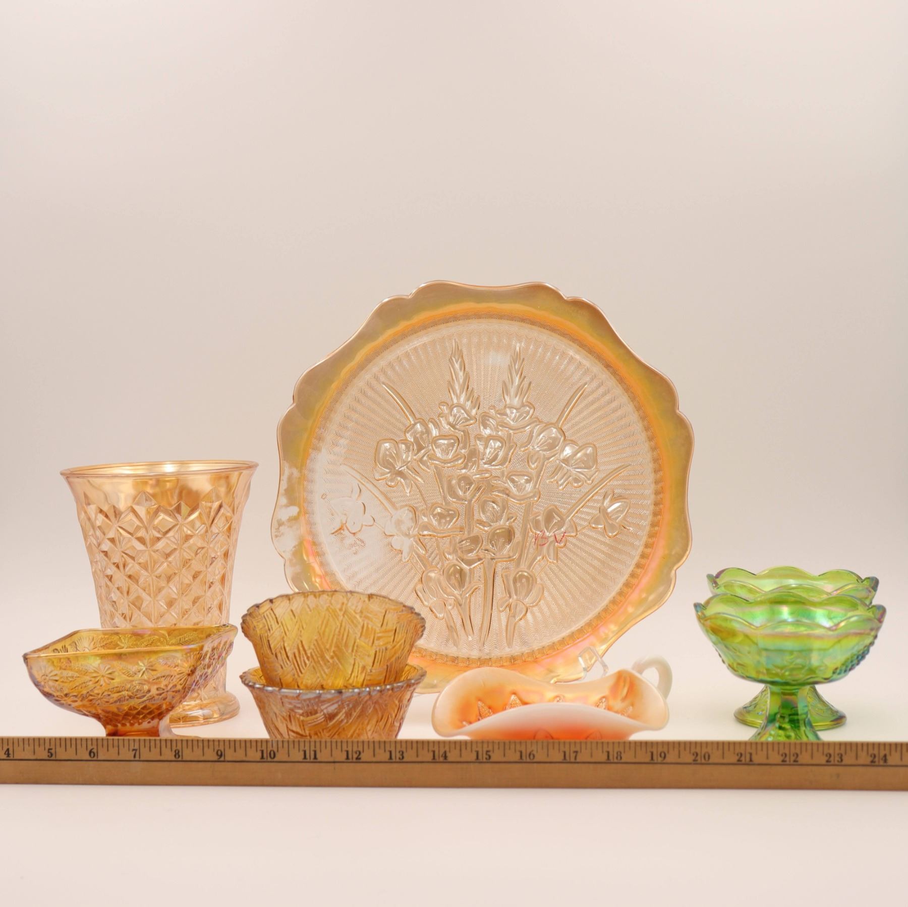 2 candle holders, one vase, platter, diamond shaped footed bowl, 2 small bowls, grape leaf dish with handle