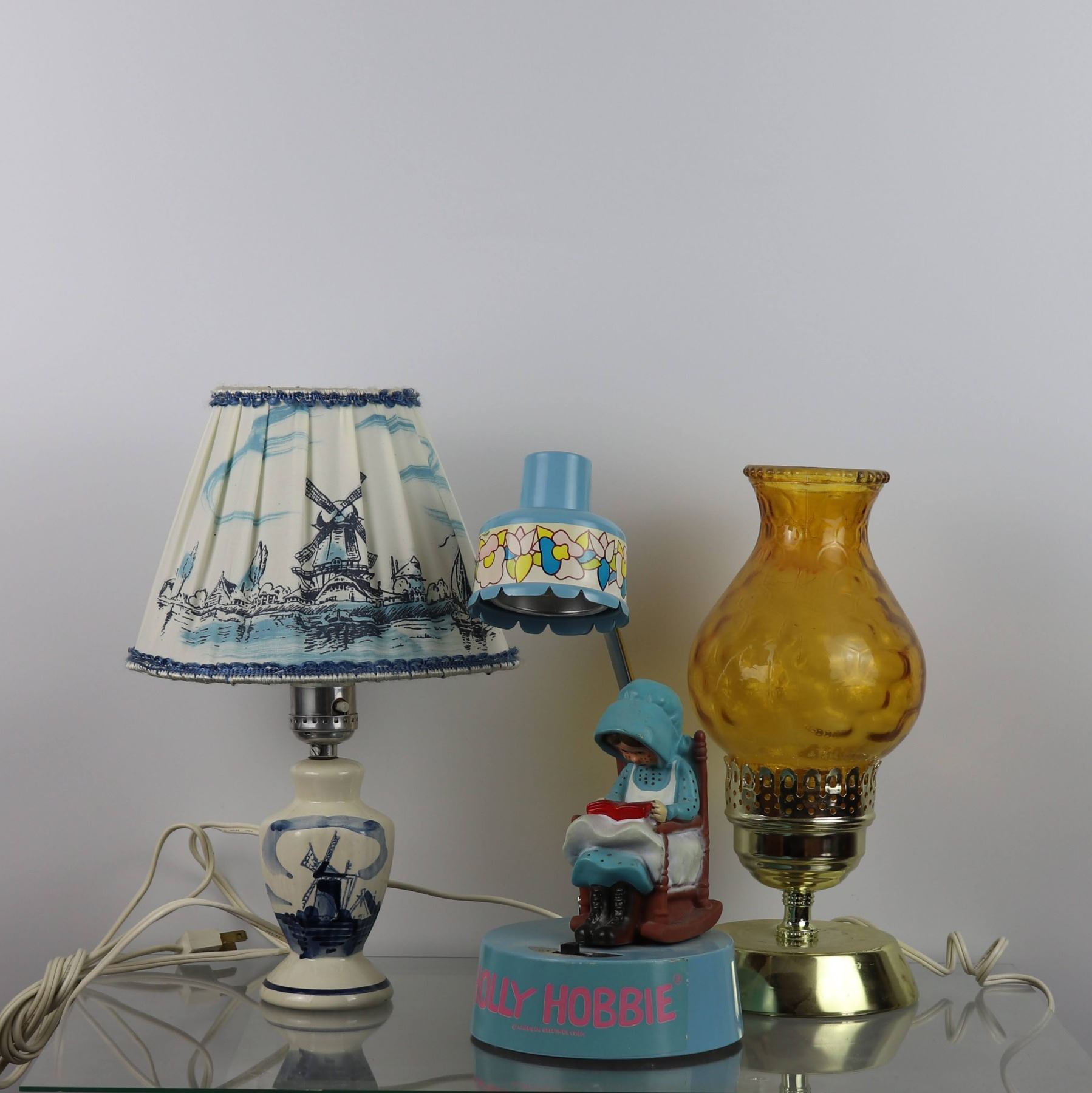Holly Hobbie lamp; Delft style lamp; faux oil lamp