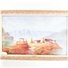 Mancini (20th century), large oil on canvas depicting an Alpine lake landscape, with snow-capped mountains rising in the distance above a serene green lake and a series of red-roofed chalets and trees scattered along a rocky, autumnal shoreline. Executed in a vivid palette of whites, blues, russets and greens with heavy impasto to the foreground. Signed Mancini at lower right. Presented in an ornate gilt-composition frame with molded foliate border and name plate. Overall approx. 45 in. wide x 29 in. high.