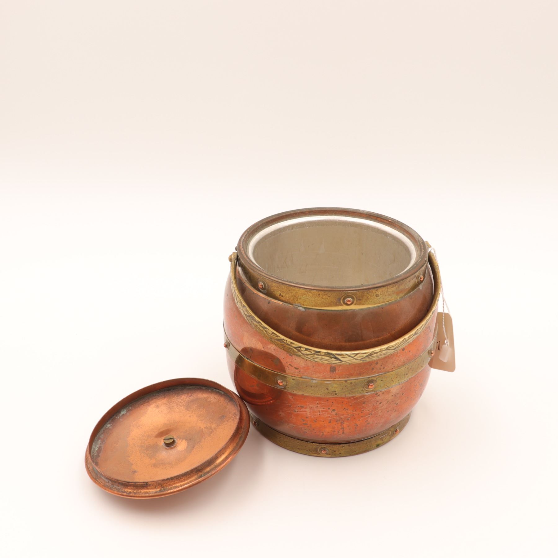 Mid-Century English Copper and Brass Barrel-Form Ice Bucket by Linton, with Glass Liner