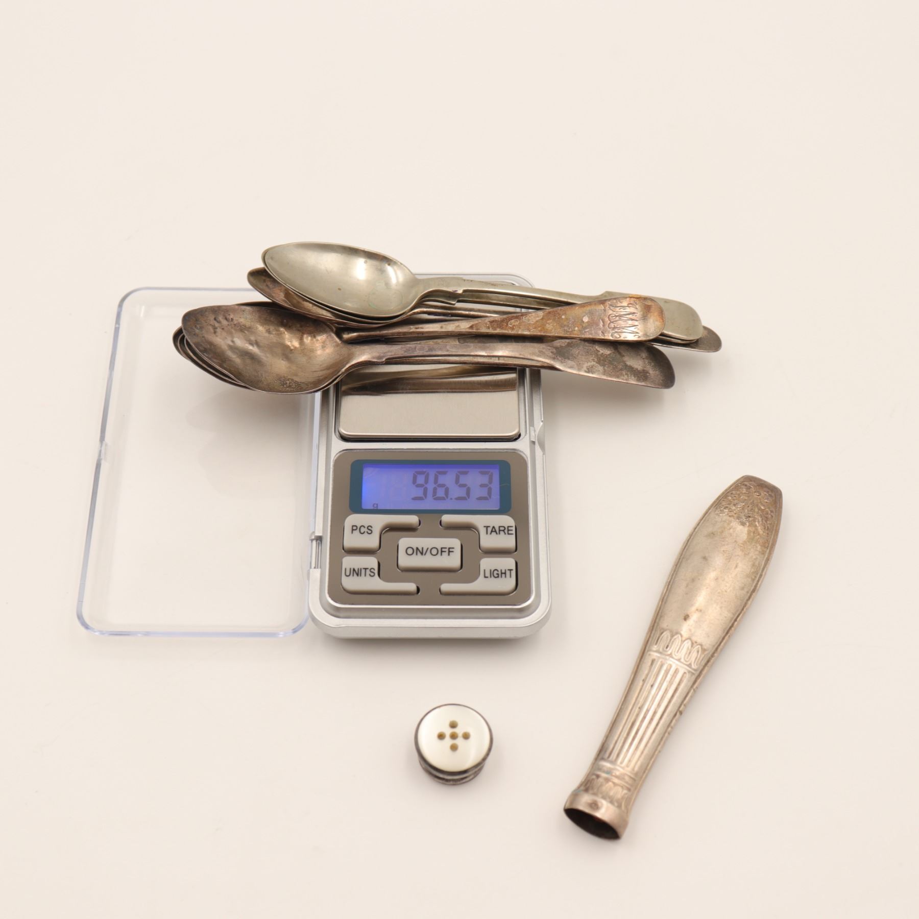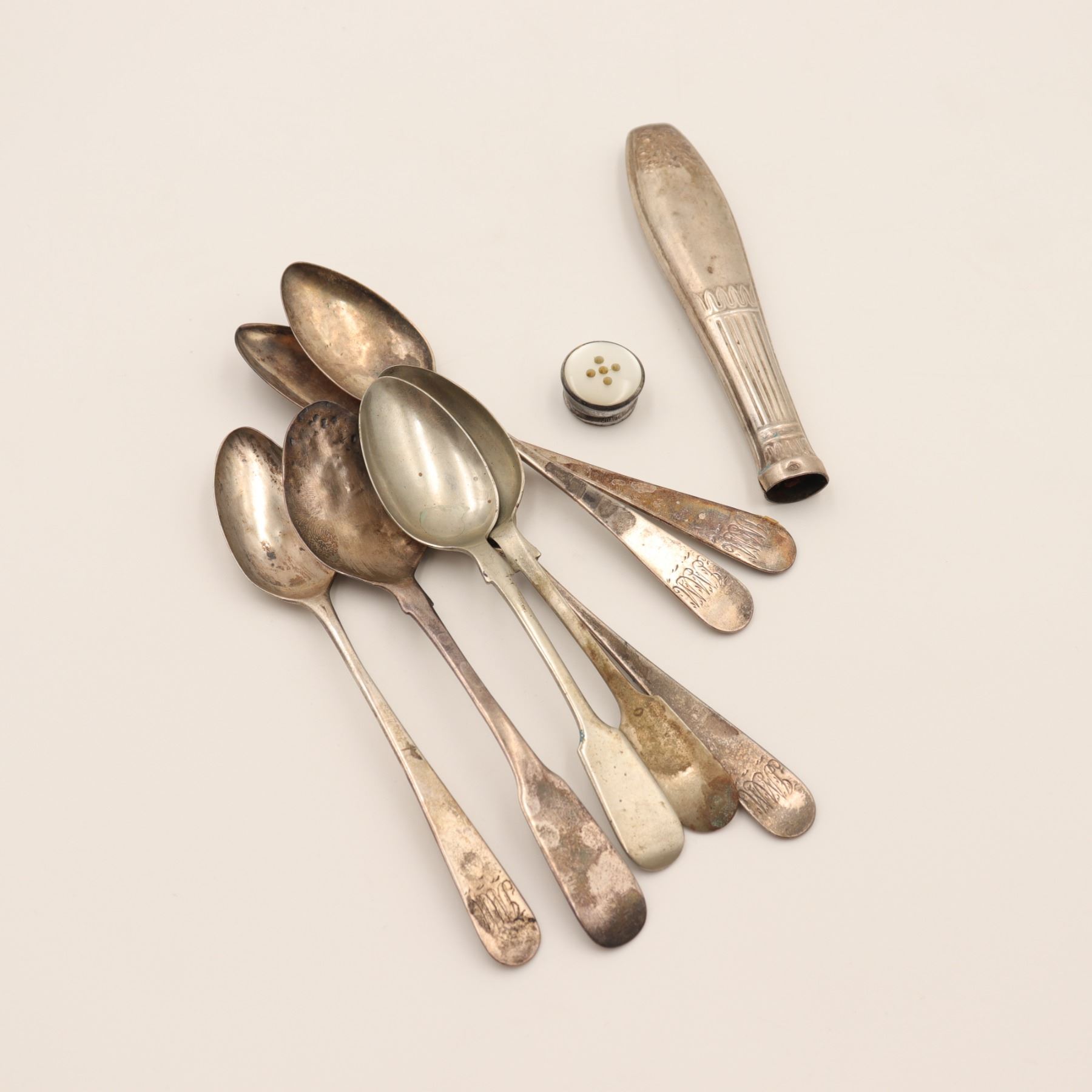Mixed Antique Silver Spoons & Small Silver Items (Various Hallmarks, incl. English & Continental)