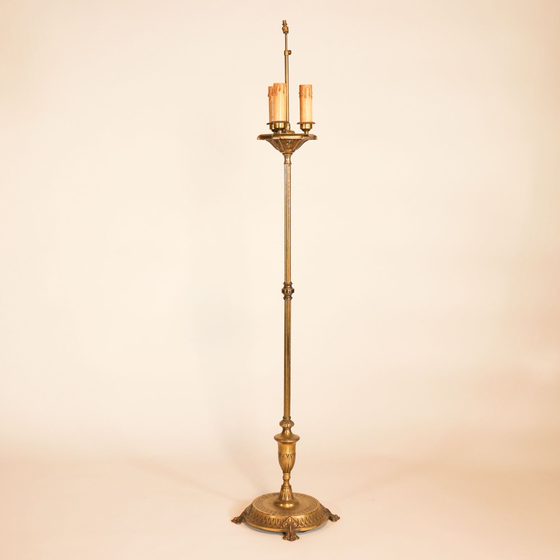 Neoclassical Brass Three-Light Floor Lamp, Early 20th Century