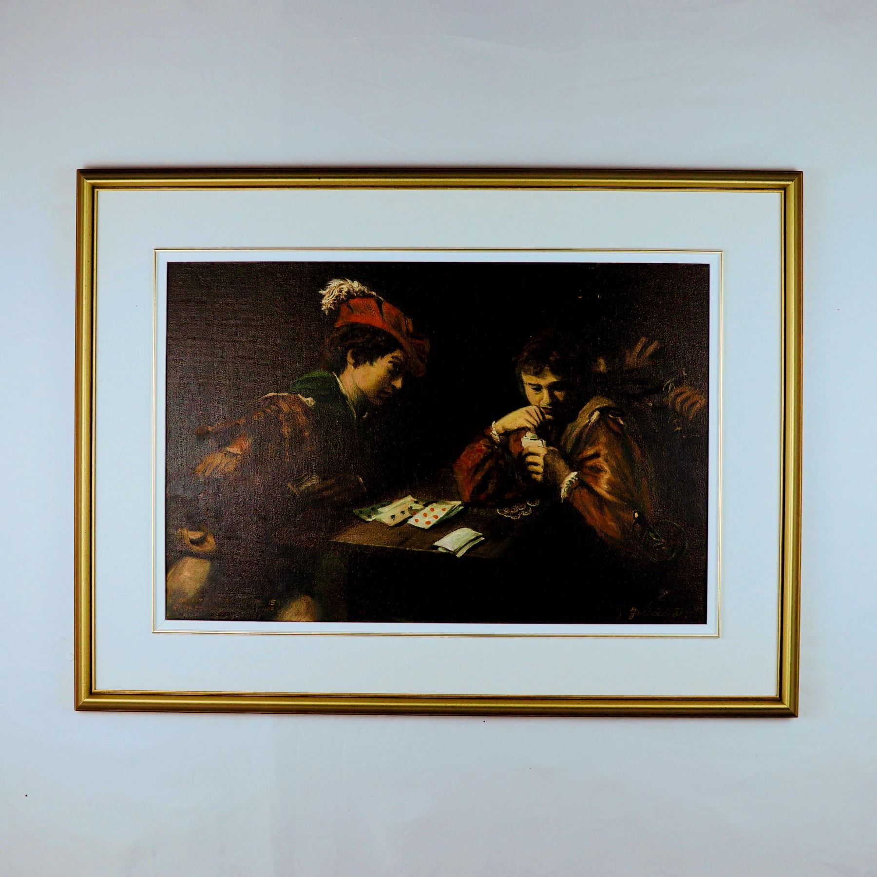 Painting "Card players" - reproduction of 1634 by G. Guiede (?)