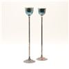Pair of tall silver-plated candlesticks by Henry Birks & Sons, Canada, 20th century, each approx. 12 in. high, marked Birks Regency Plate St. James to the base and presented in the original Birks blue presentation box. Elegant tapering stems with circular bases. Light surface wear and polishing marks from use; box with age-related scuffs and edge wear.