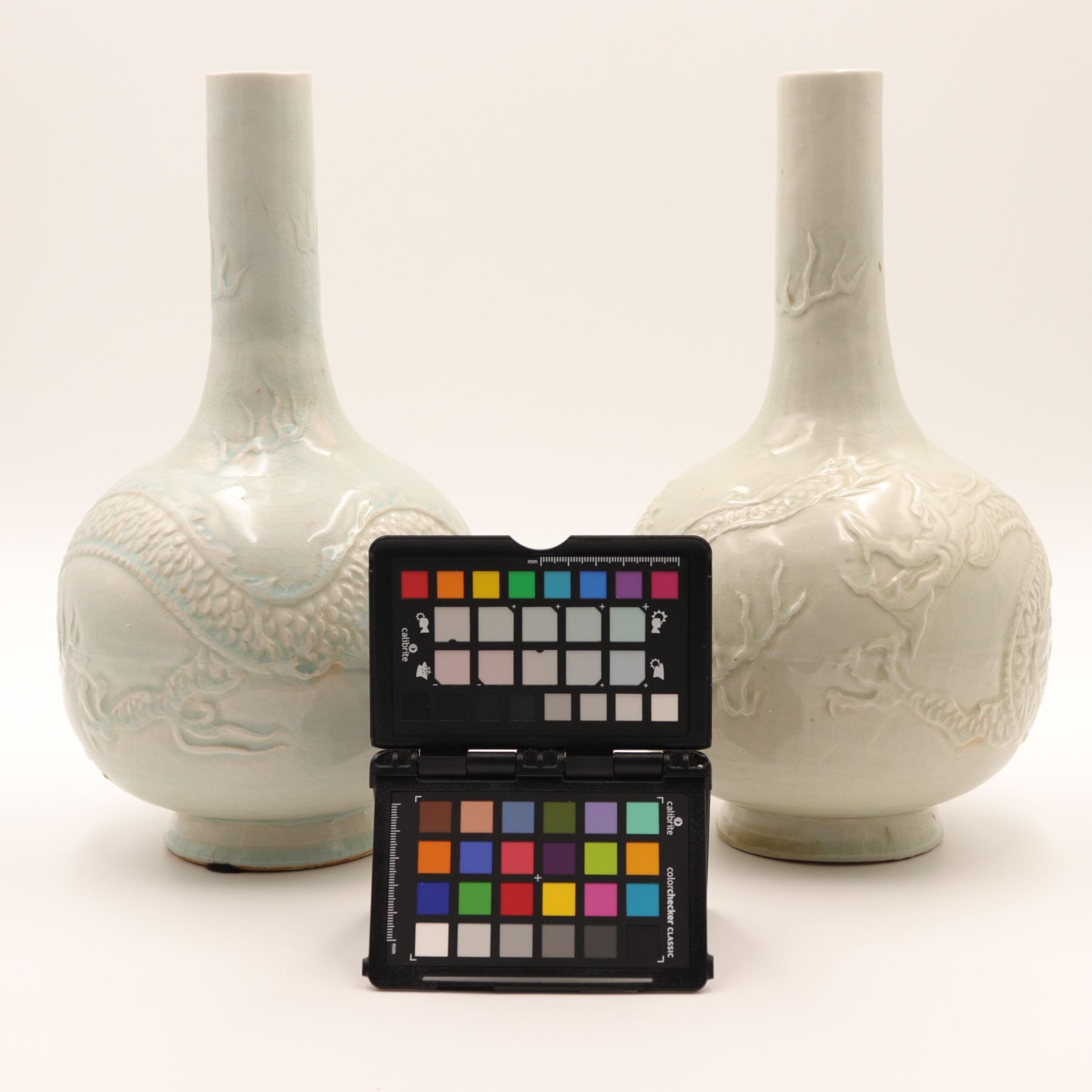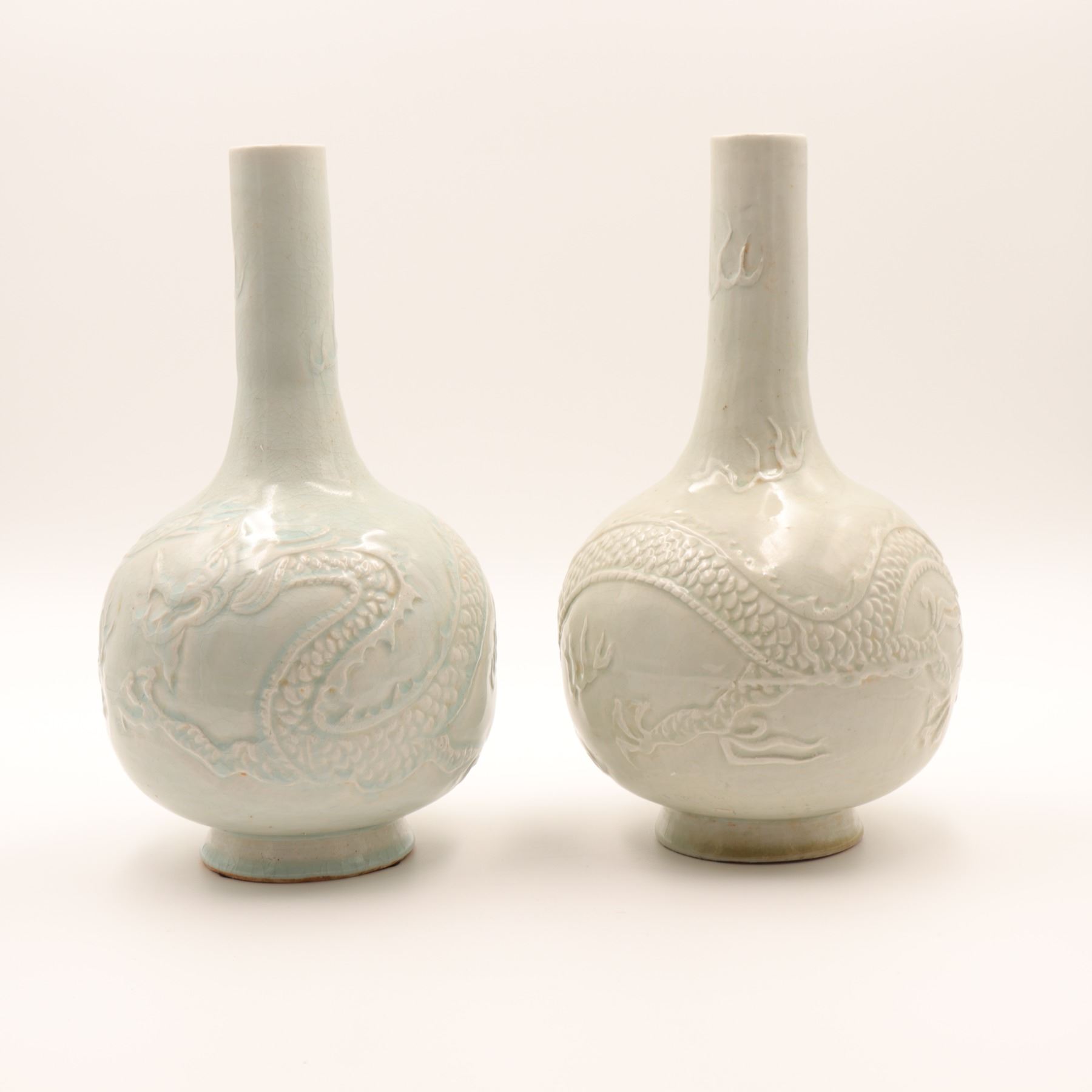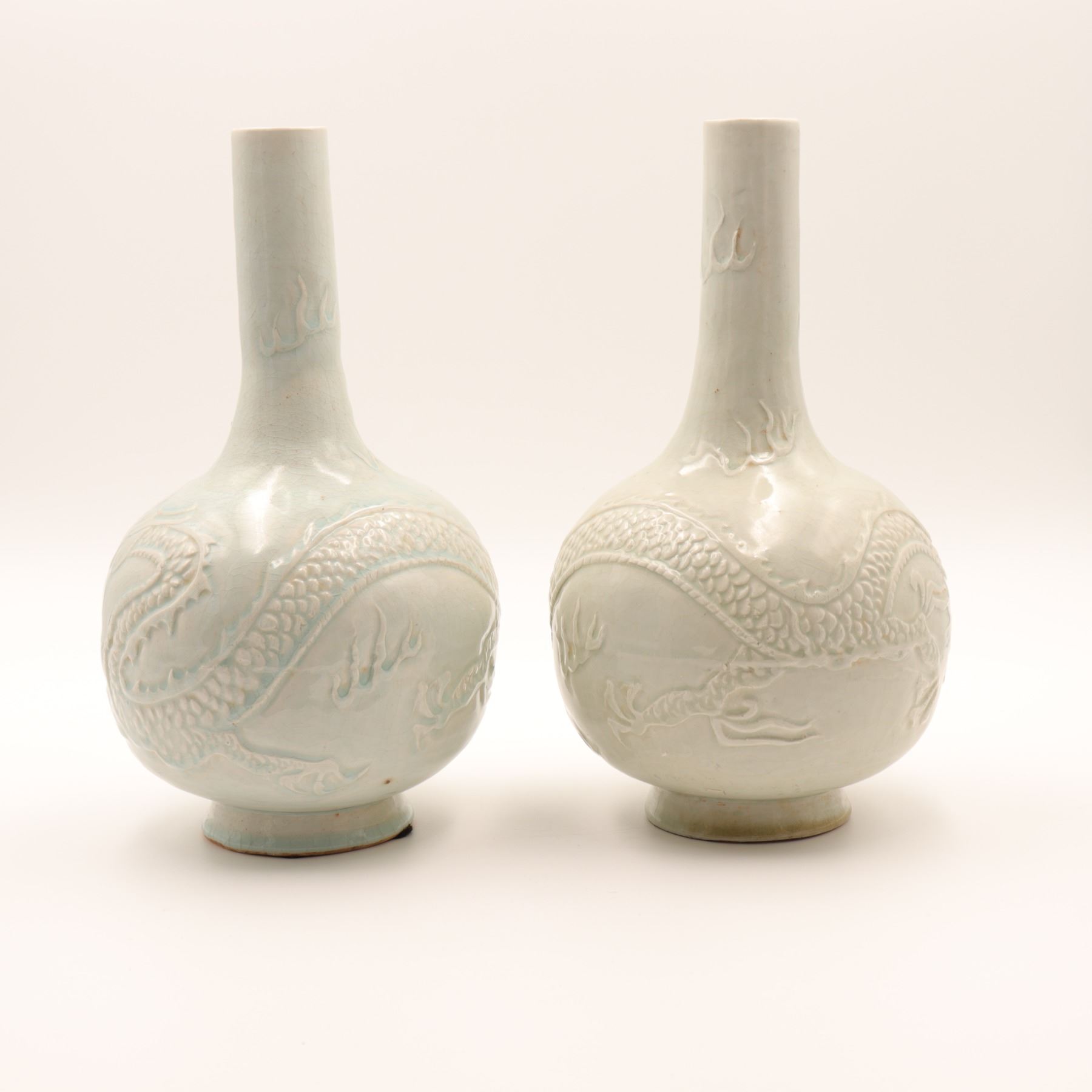 Pair of Chinese Celadon-Glazed Dragon Vases, 20th Century