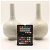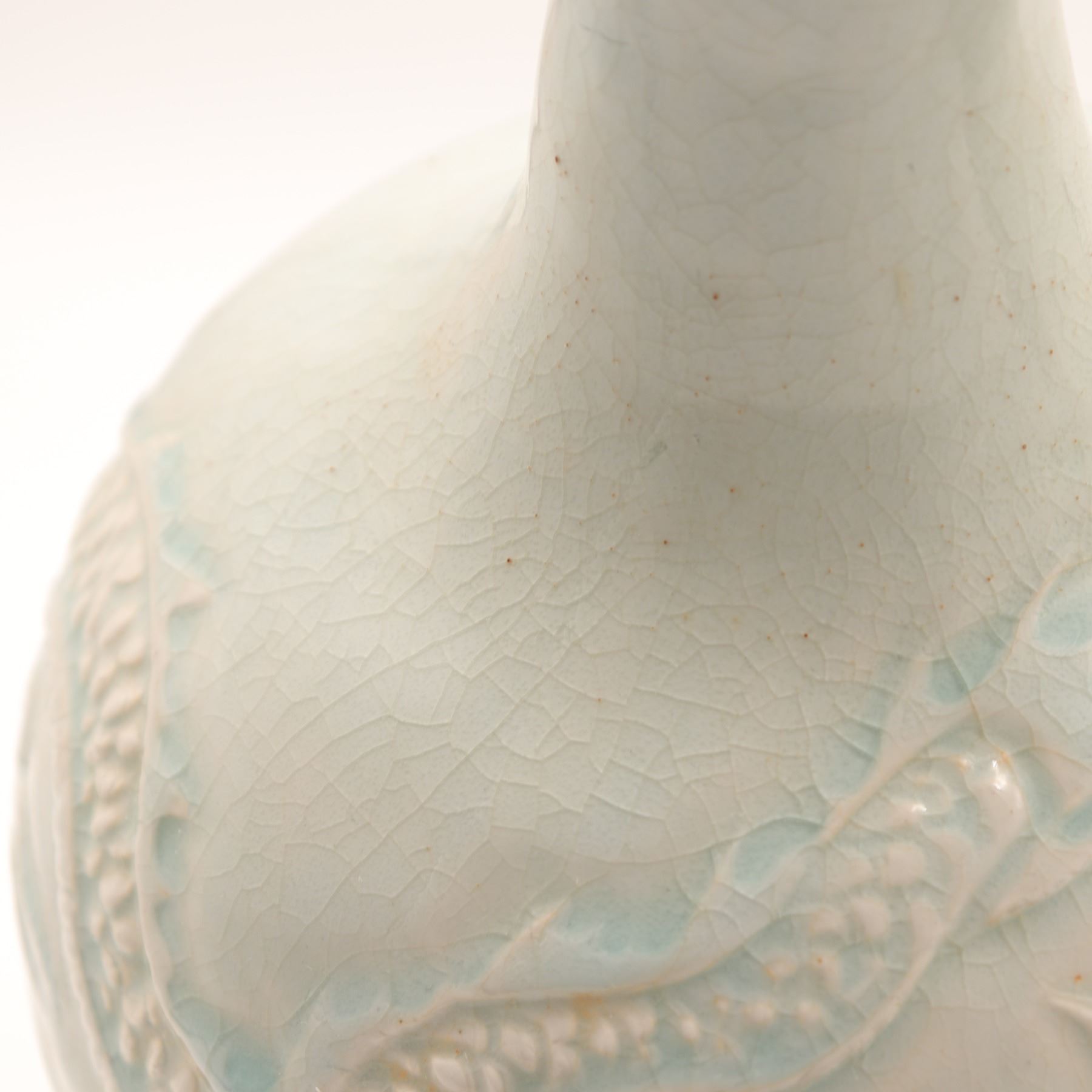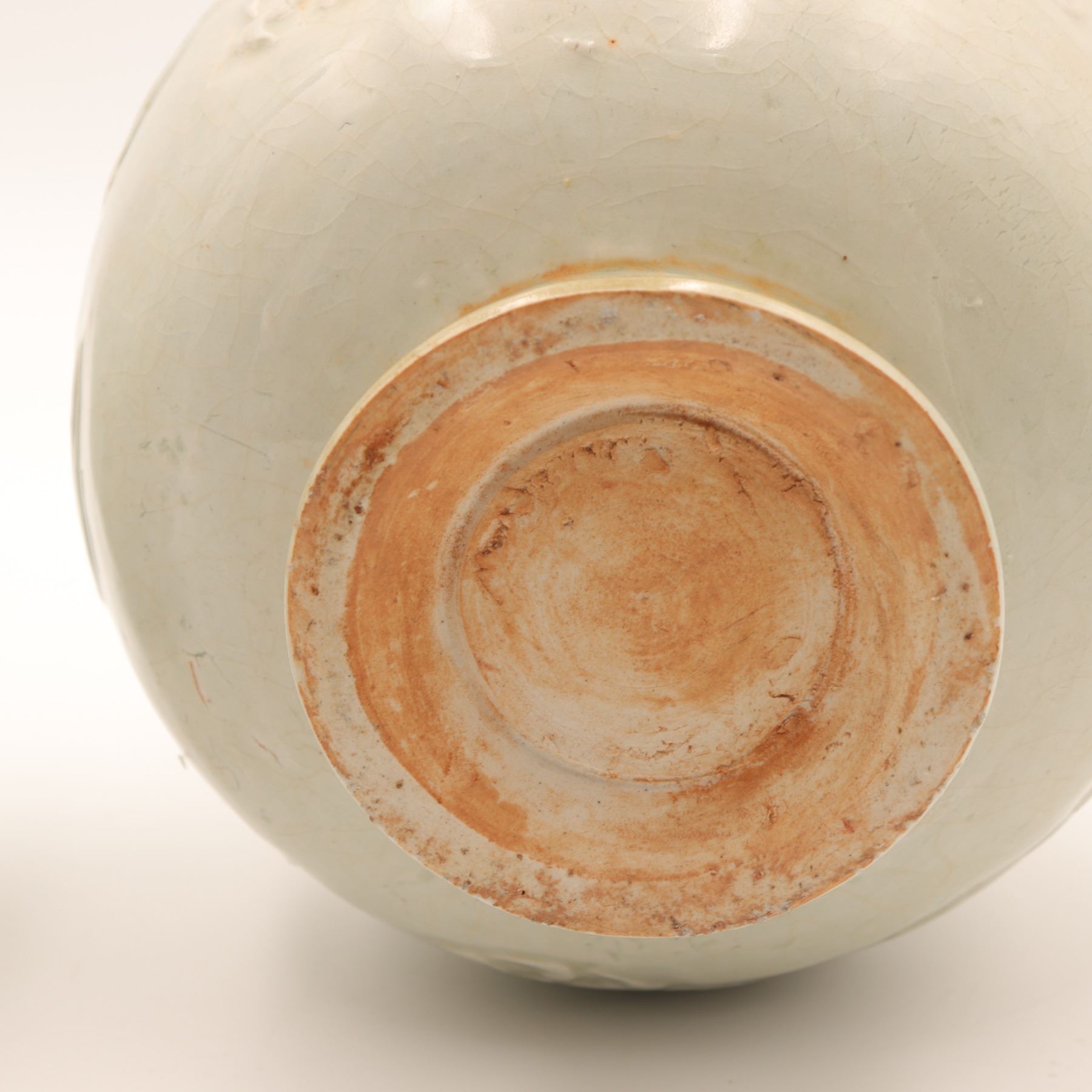 Condition: Both vases in very good condition with no apparent chips or structural cracks; deliberate all-over crazing to the glaze with minor associated staining and small firing imperfections; light wear to the foot rims.