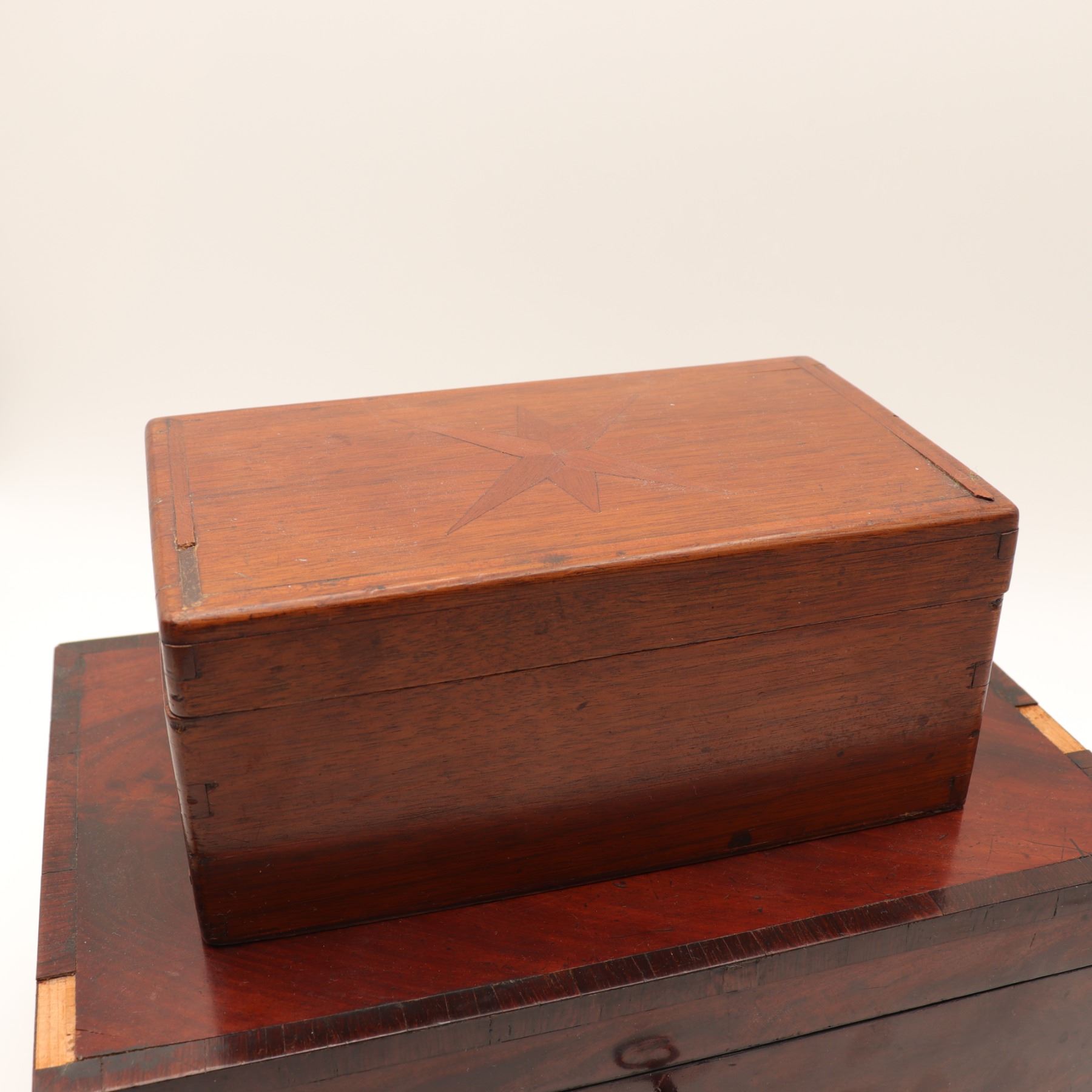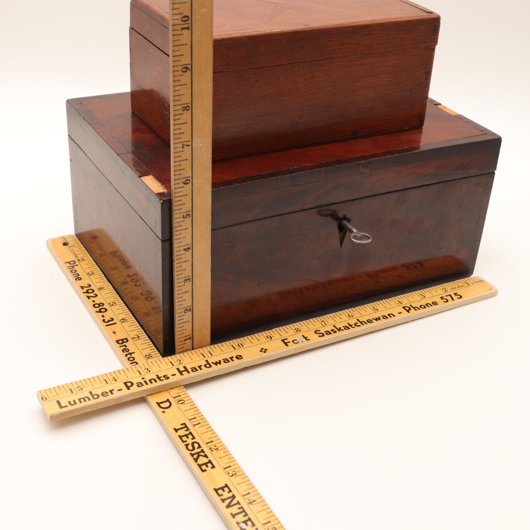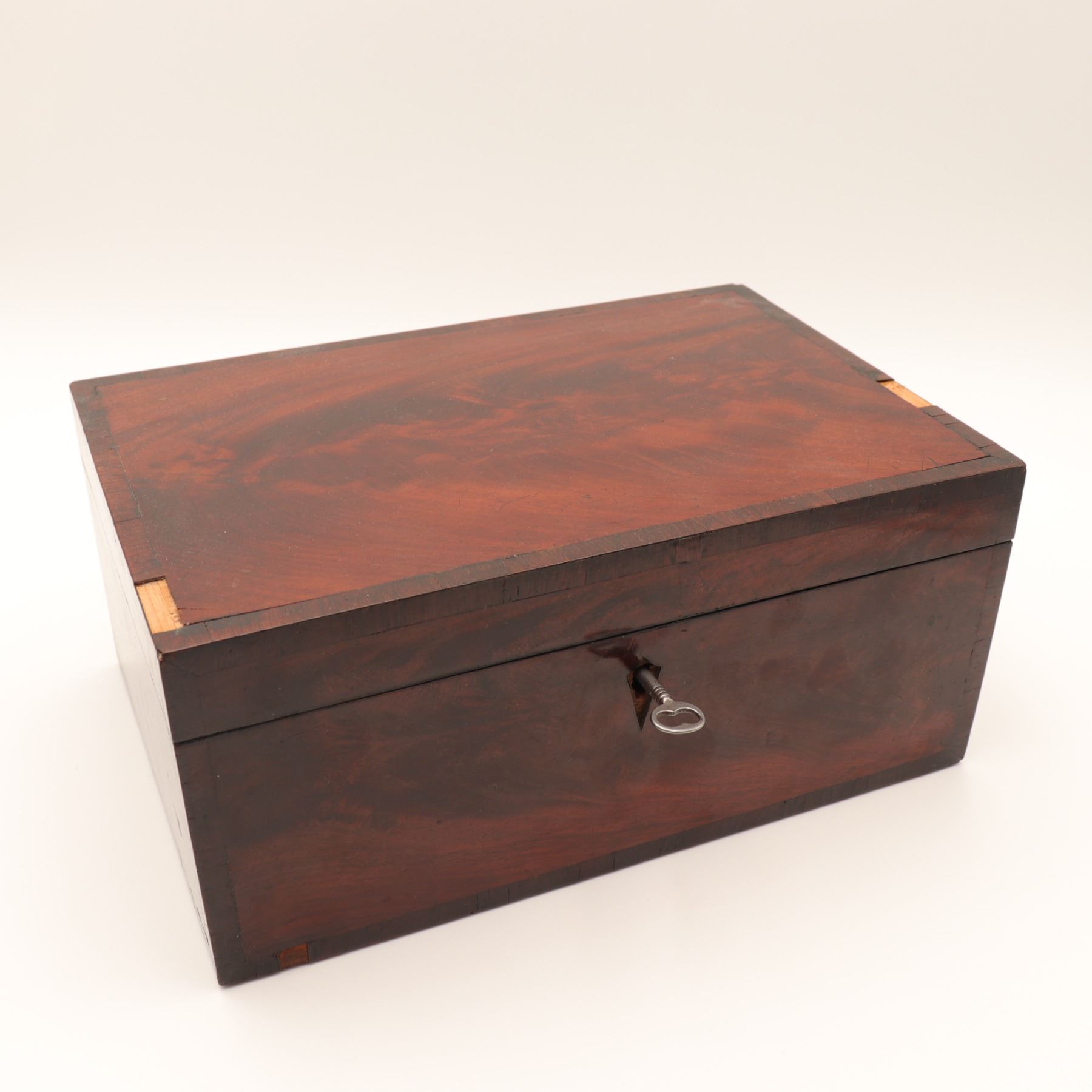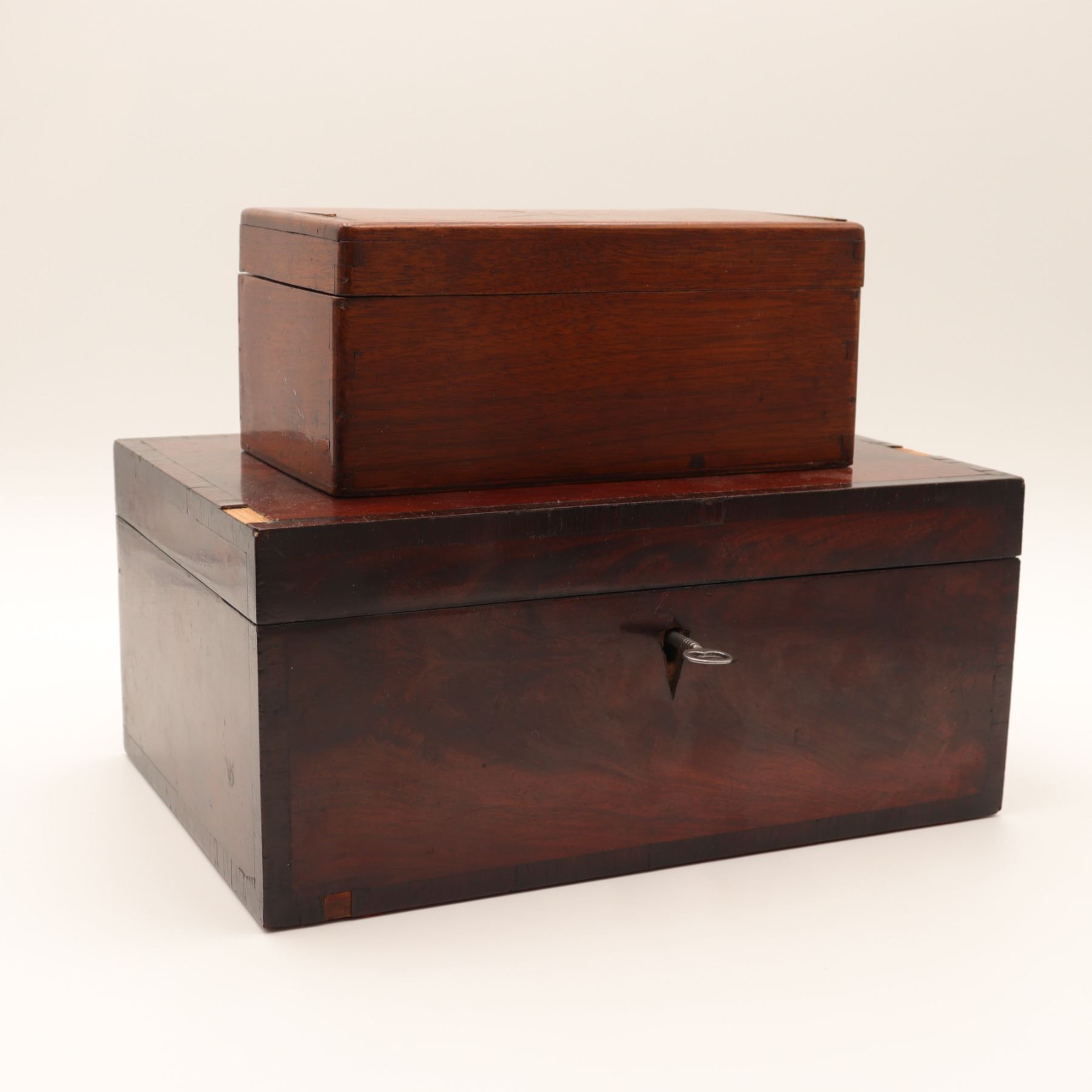 Pair of Wooden Boxes, Including Fitted Mahogany Jewellery/Document Box with Key