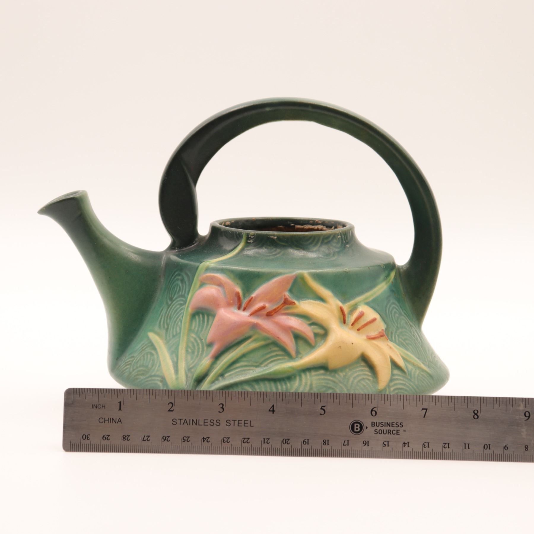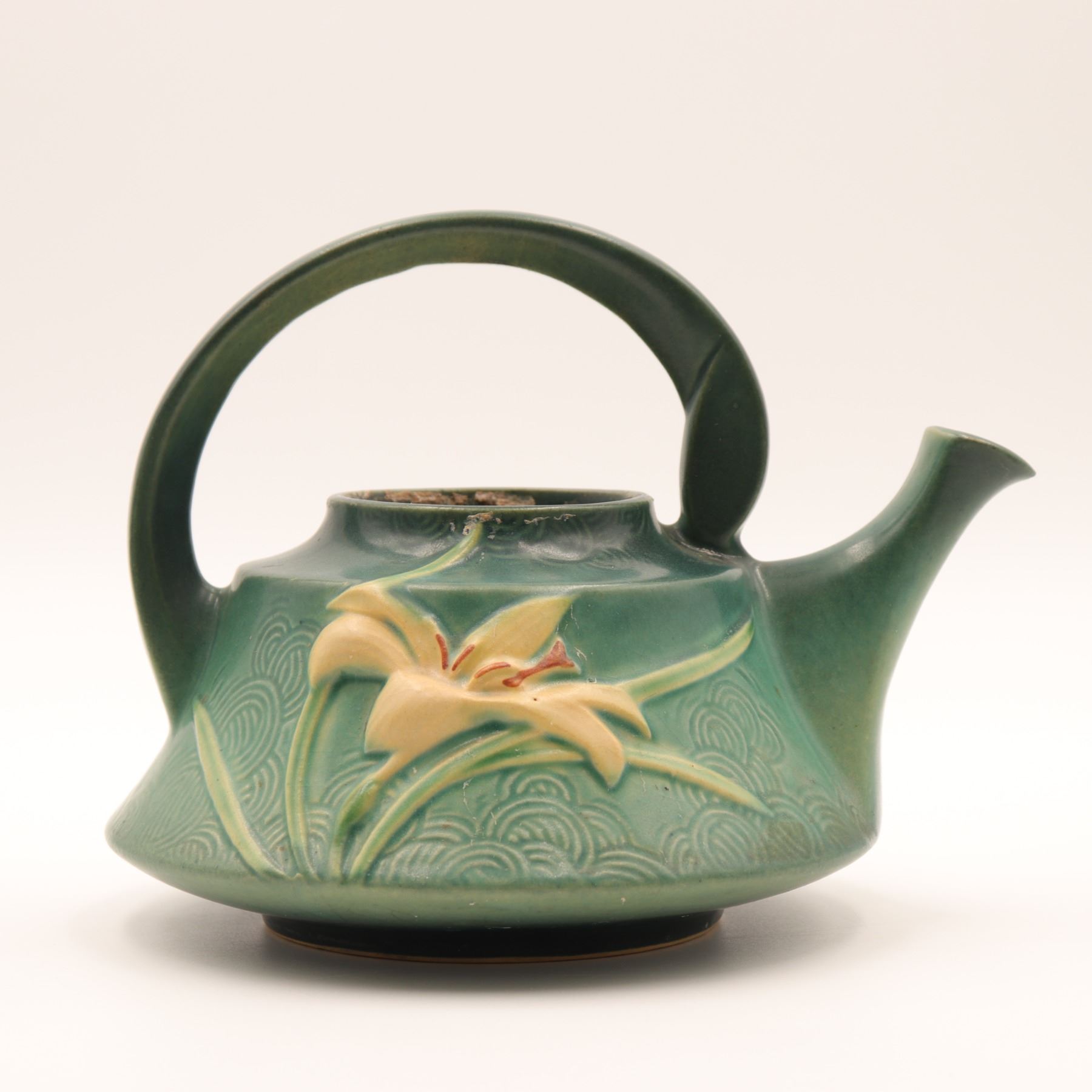 Roseville Pottery “Zephyr Lily” Watering Can, Shape 7T, c. 1946–1950
