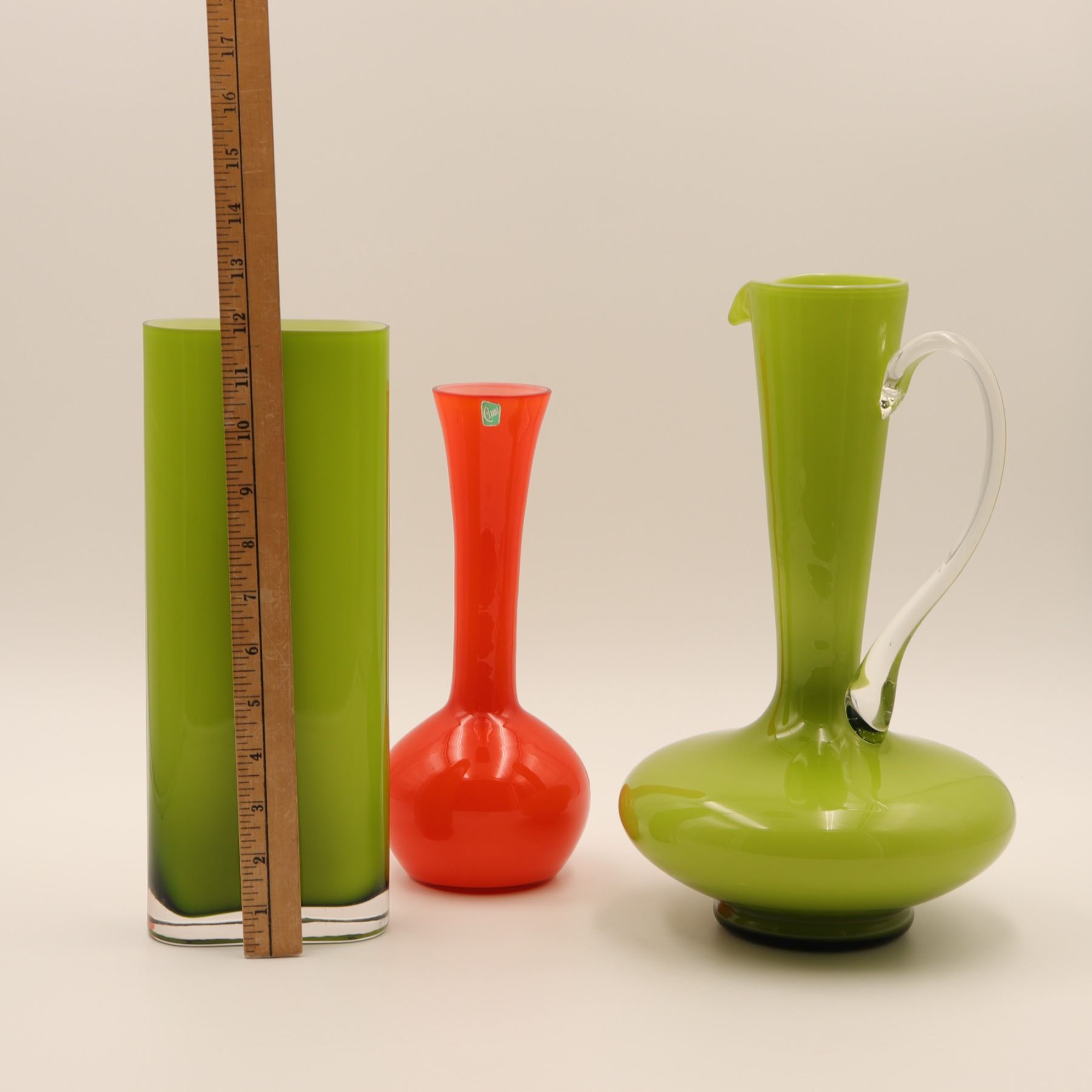 Set of 3 cased glass vases