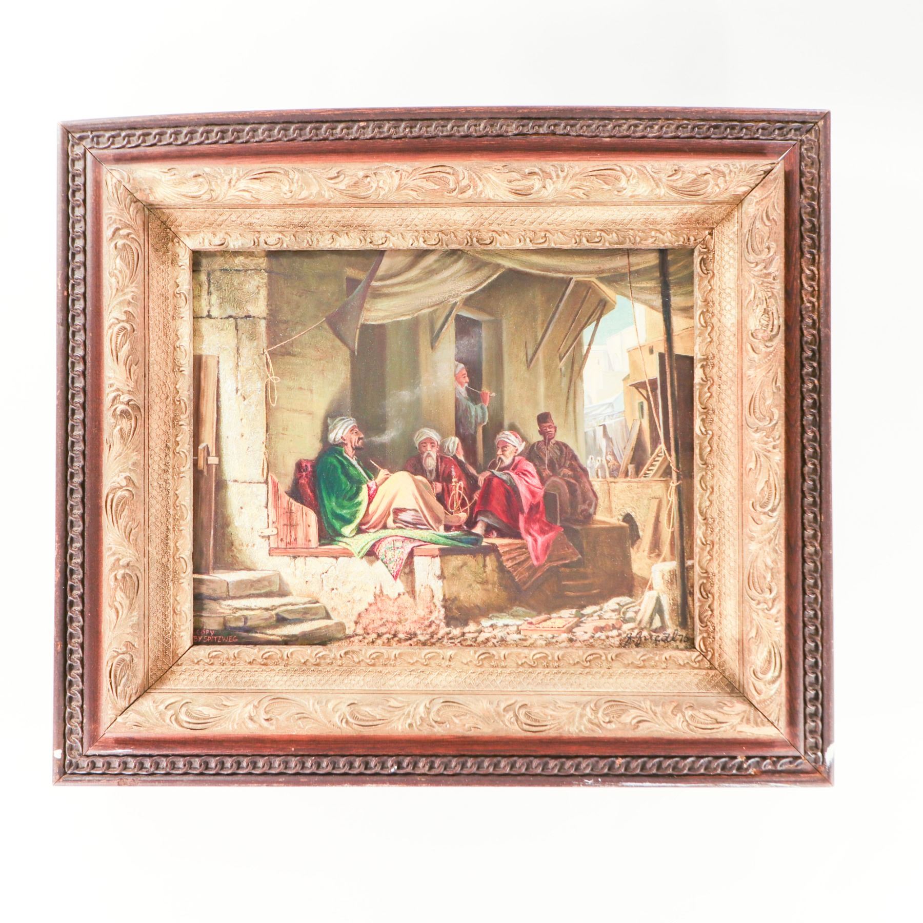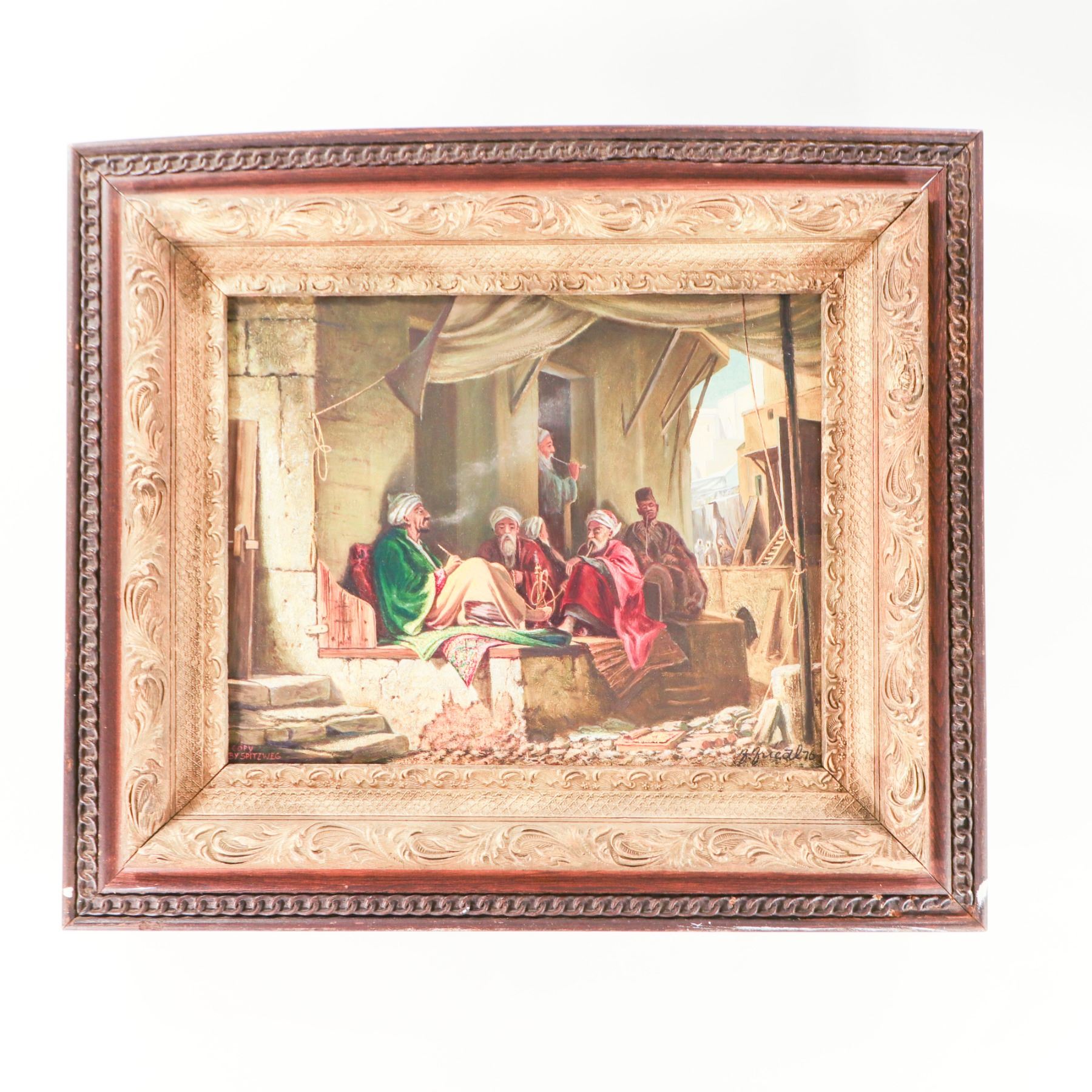 Signed Orientalist Street Scene Oil Painting in Gilt Frame