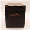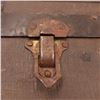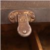 Condition: structurally solid; expected oxidation to iron, scuffs to canvas, wear and small losses to wallpaper; handles worn; lock untested/no key. Presents well.