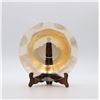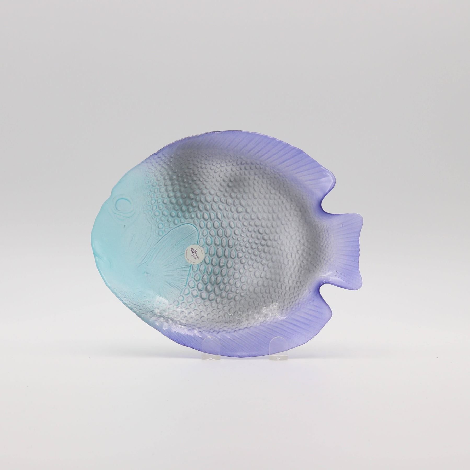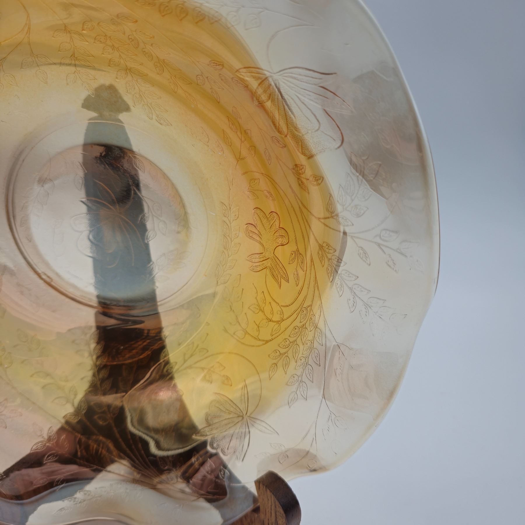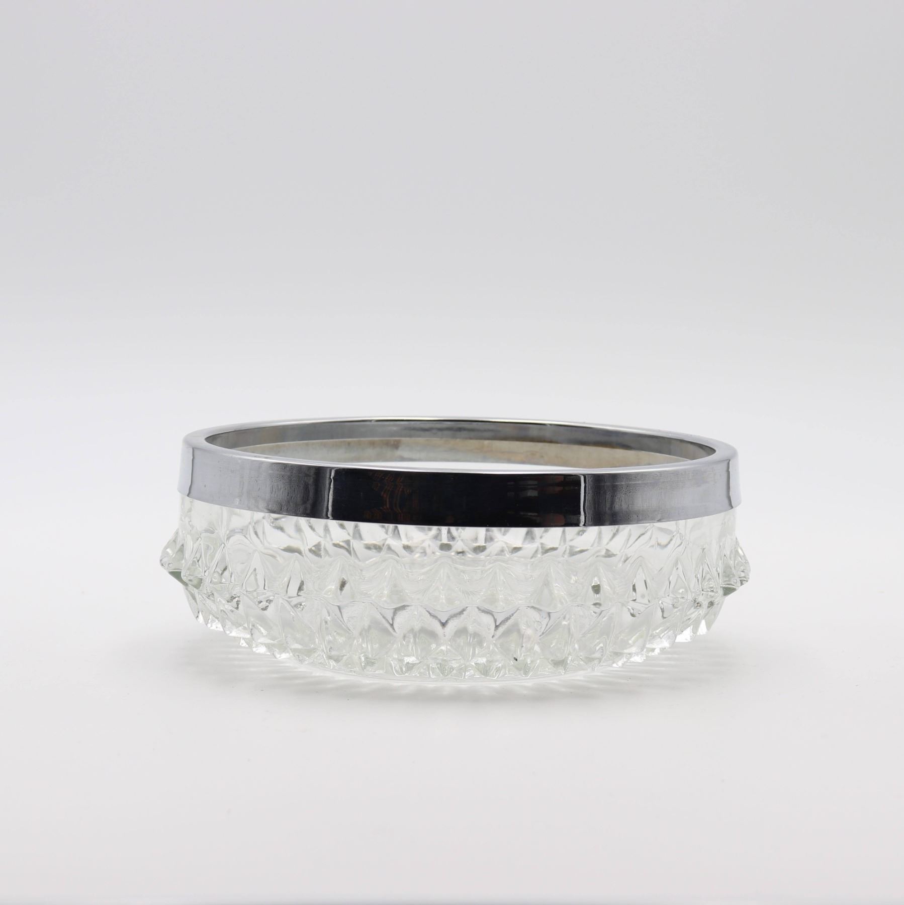 Glass footed saucer with ladle, fish plate, silver rimmed bowl, iridescent scalloped edge bowl
