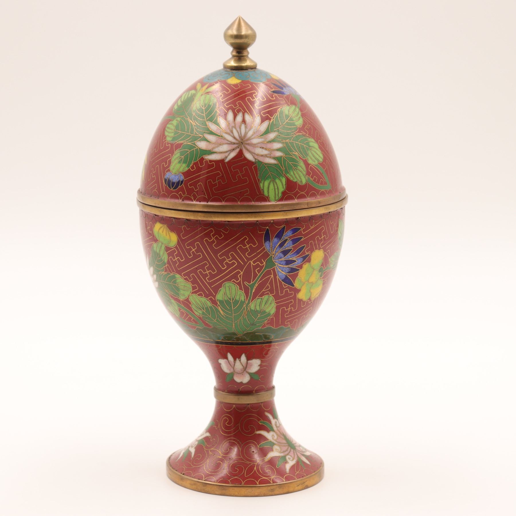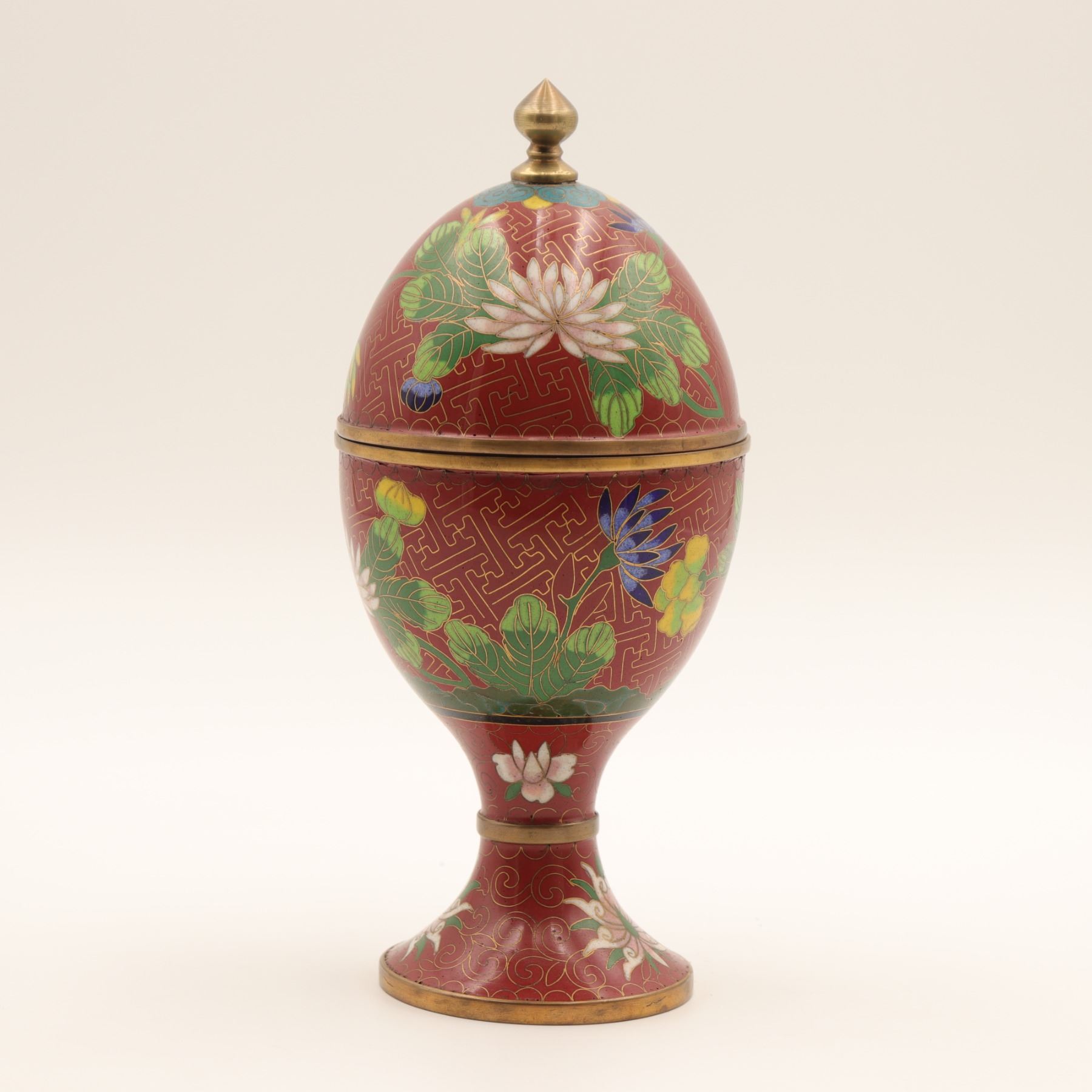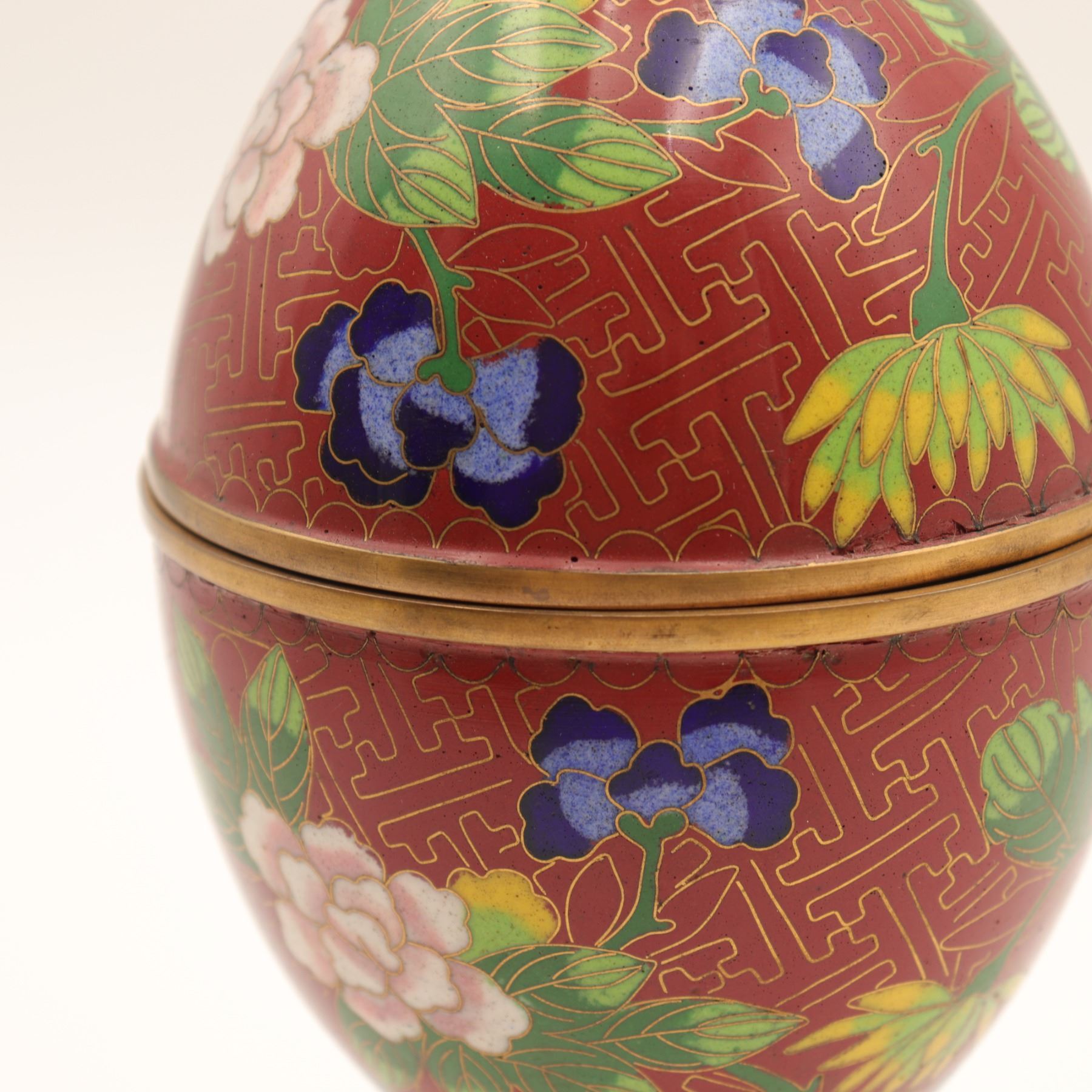 Tall Chinese Cloisonné Egg on Stand, Mid–20th Century