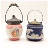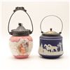 Two Victorian Biscuit Barrels – Pink Transfer and Jasperware