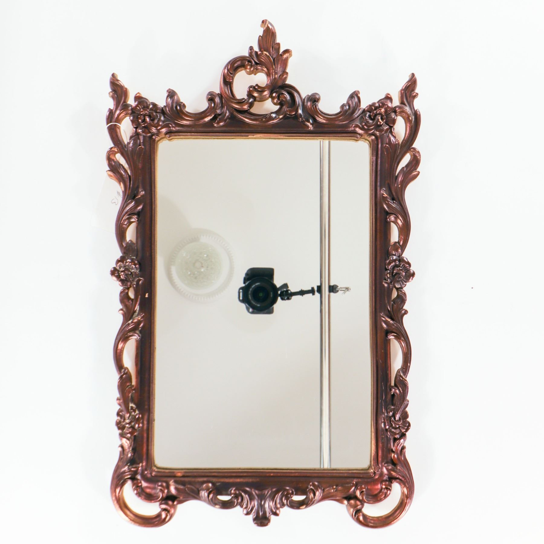 Vintage Rococo-Style Copper Finish Wall Mirror